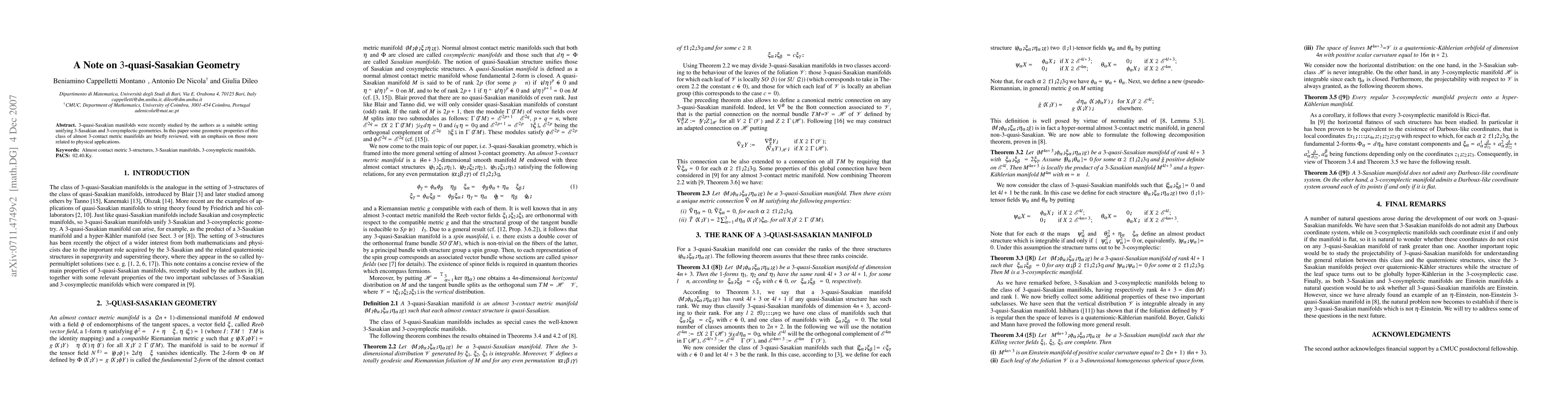 Summary: This paper reviews geometric properties of 3-quasi-Sasakian manifolds, focusing on their unifying nature between 3-Sasakian and 3-cosymplectic geometries and their relevance to physical applications. Key geometric aspects are highlighted for their potential use in theoretical physics.