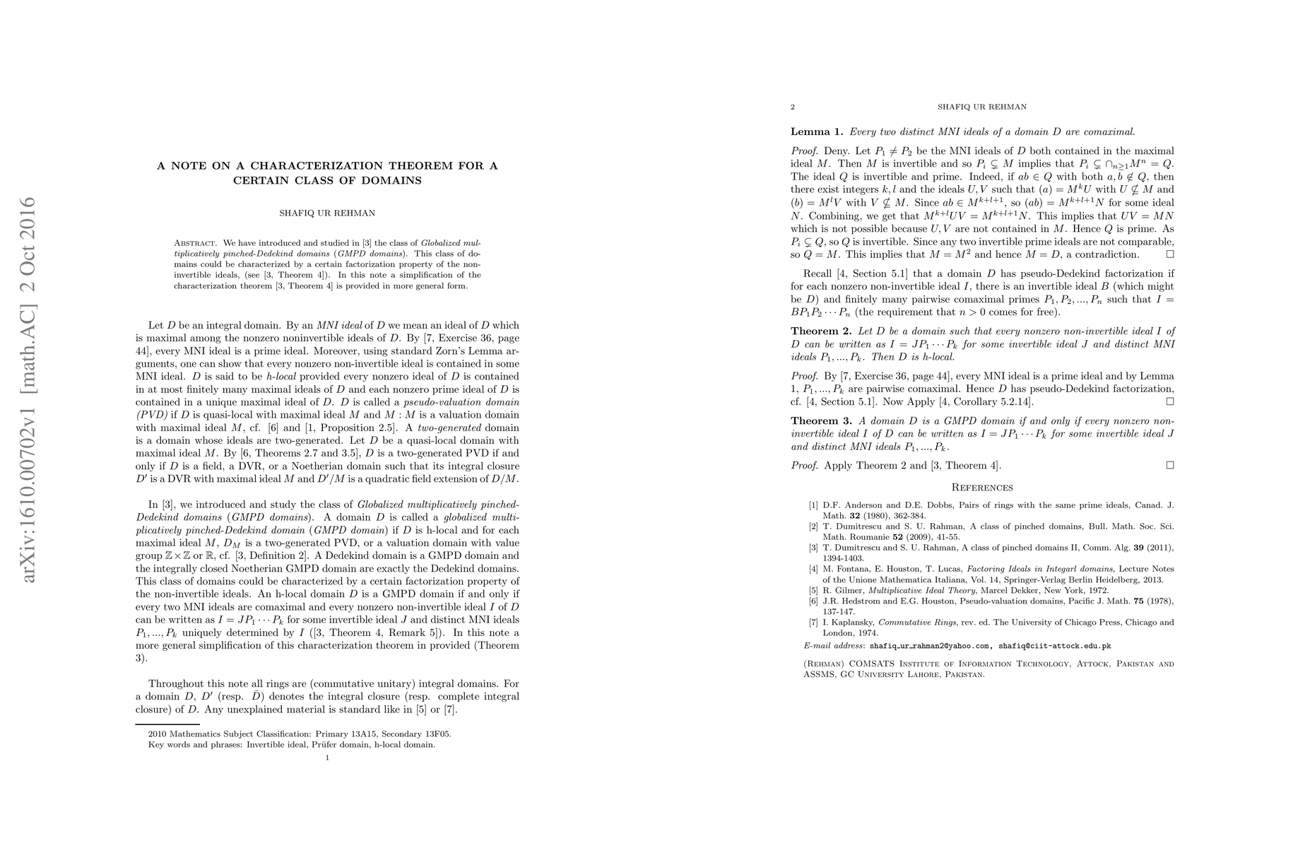 We have introduced and studied in [3] the class of Globalized multiplicatively pinched-Dedekind domains (GMPD domains). This class of domains could be characterized by a certain factorization property of the non-invertible ideals, (see [3, Theorem 4]). In this note a simplification of the characterization theorem [3, Theorem 4] is provided in more general form.