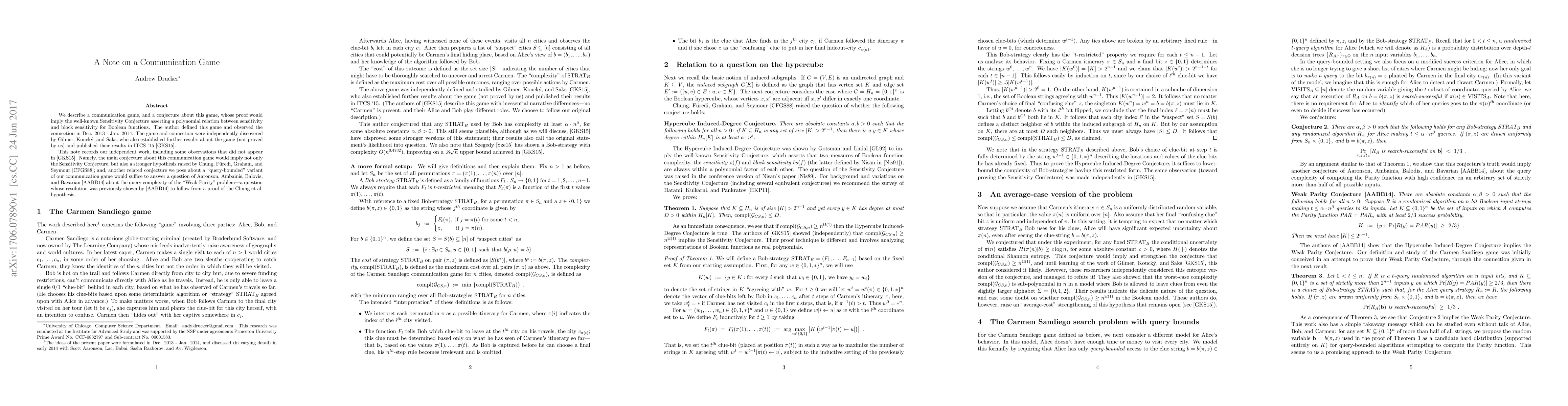 Researchers explore a communication game that links to the Sensitivity Conjecture, potentially resolving long-standing questions in Boolean function analysis, with implications for query complexity and problem resolution.