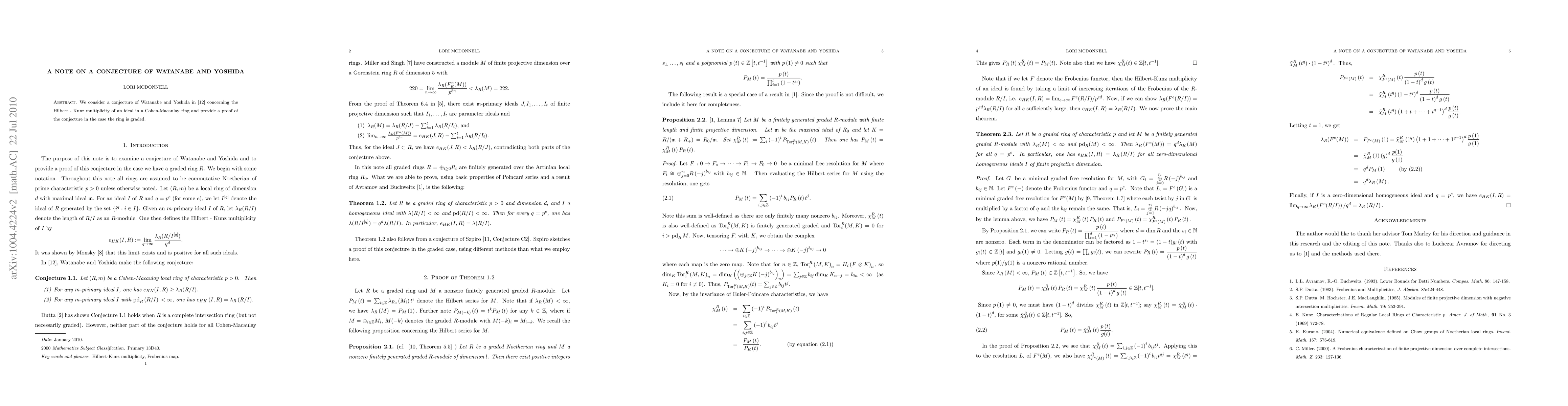 We consider a conjecture of Watanabe and Yoshida concerning the Hilbert - Kunz multiplicity of an ideal in a Cohen-Macaulay ring and provide a proof of the conjecture in the case the ring is graded.