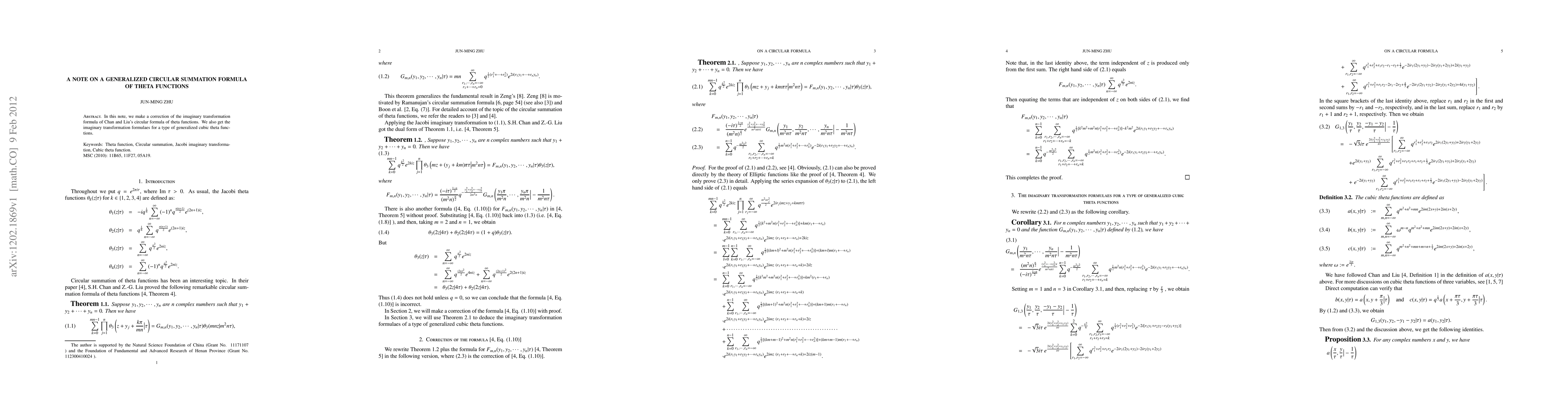 The paper presents a corrected formula and proves new imaginary transformation formulas for a specific class of generalized cubic theta functions.
