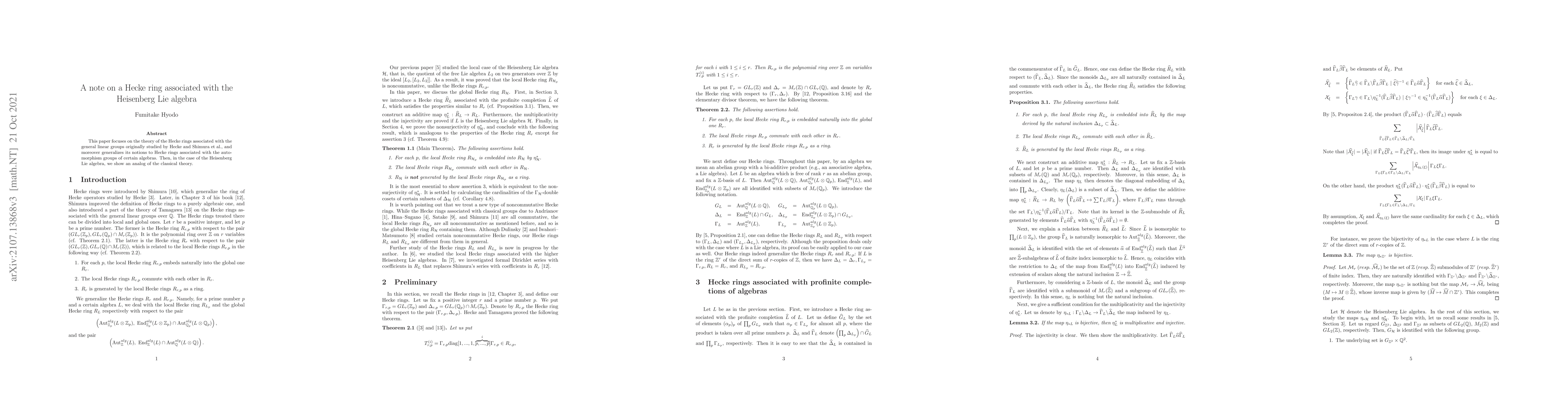 This paper explores Hecke rings associated with the Heisenberg Lie algebra, generalizing earlier theories to automorphism groups of algebras, and reveals an analog of classical theory for this specific case.