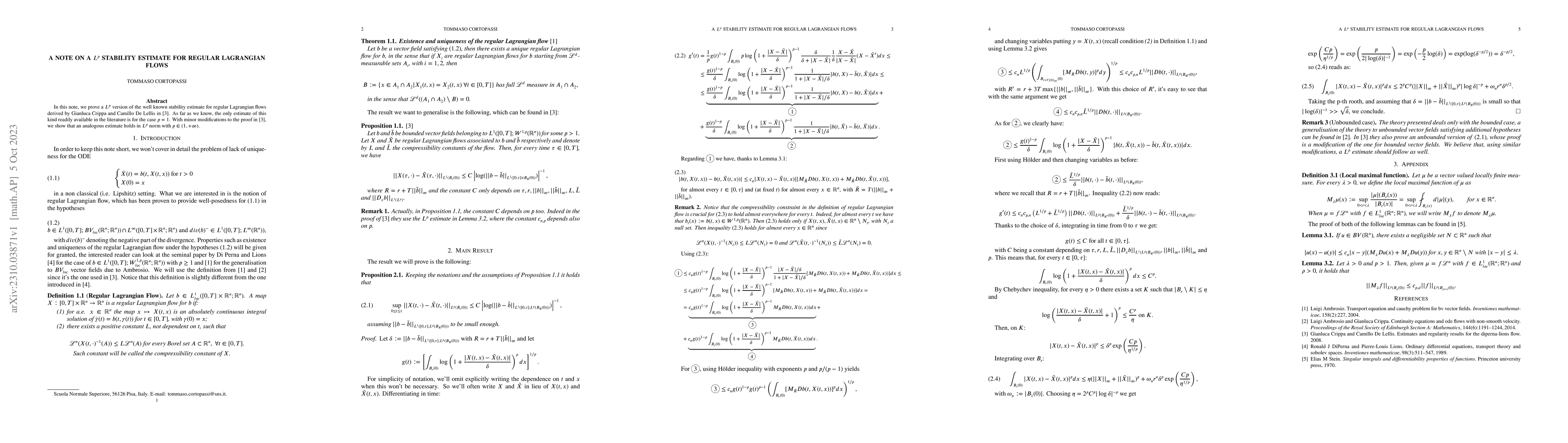 This paper proves an $L^p$ stability estimate for regular Lagrangian flows, extending the existing $L^1$ result to $p \in (1, +\infty)$ by adapting the proof from Crippa and De Lellis' work.