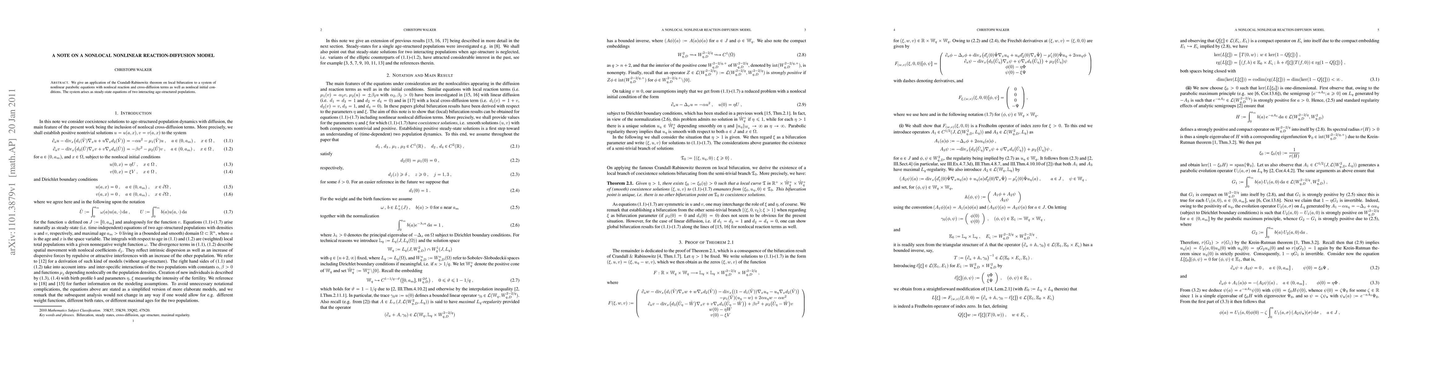 Researchers apply a theorem to study nonlinear interactions between two age-structured populations, finding steady-state equations with nonlocal effects.