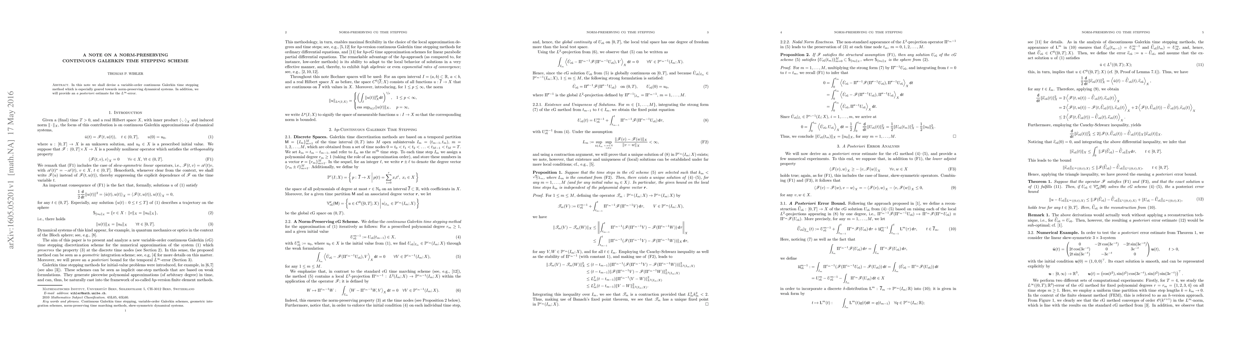 In this note we shall devise a variable-order continuous Galerkin time stepping method which is especially geared towards norm-preserving dynamical systems. In addition, we will provide an a posteriori estimate for the $L^\infty$-error.