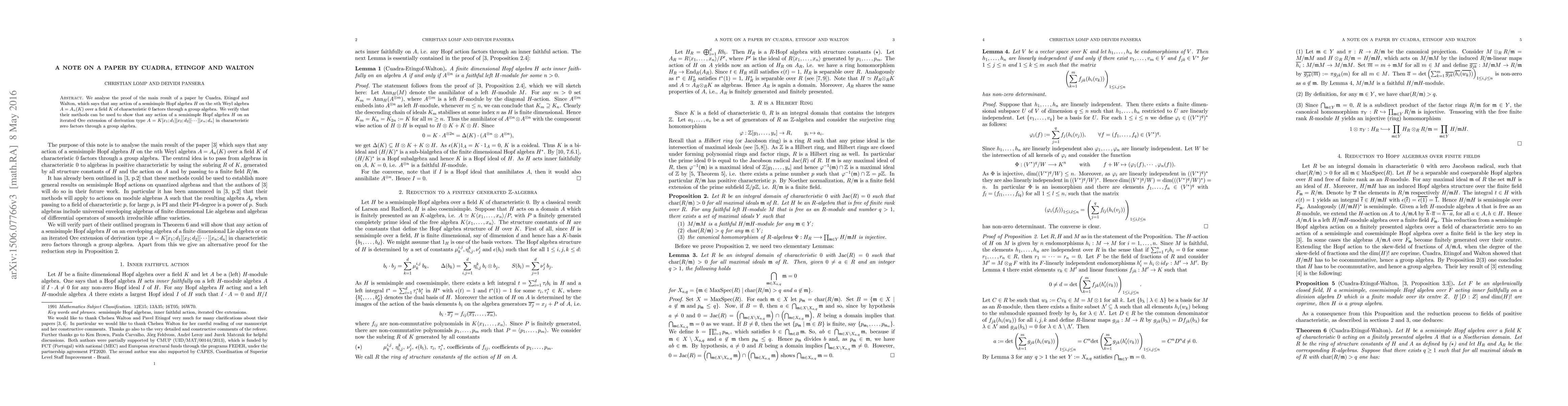 We analyse the proof of the main result of a paper by Cuadra, Etingof and Walton, which says that any action of a semisimple Hopf algebra $H$ on the $n$th Weyl algebra $A=A_n(K)$ over a field $K$ of characteristic $0$ factors through a group algebra. We verify that their methods can be used to show that any action of a semisimple Hopf algebra $H$ on an iterated Ore extension of derivation type $A=K[x_1;d_1][x_2;d_2][\cdots][x_n;d_n]$ in characteristic zero factors through a group algebra.