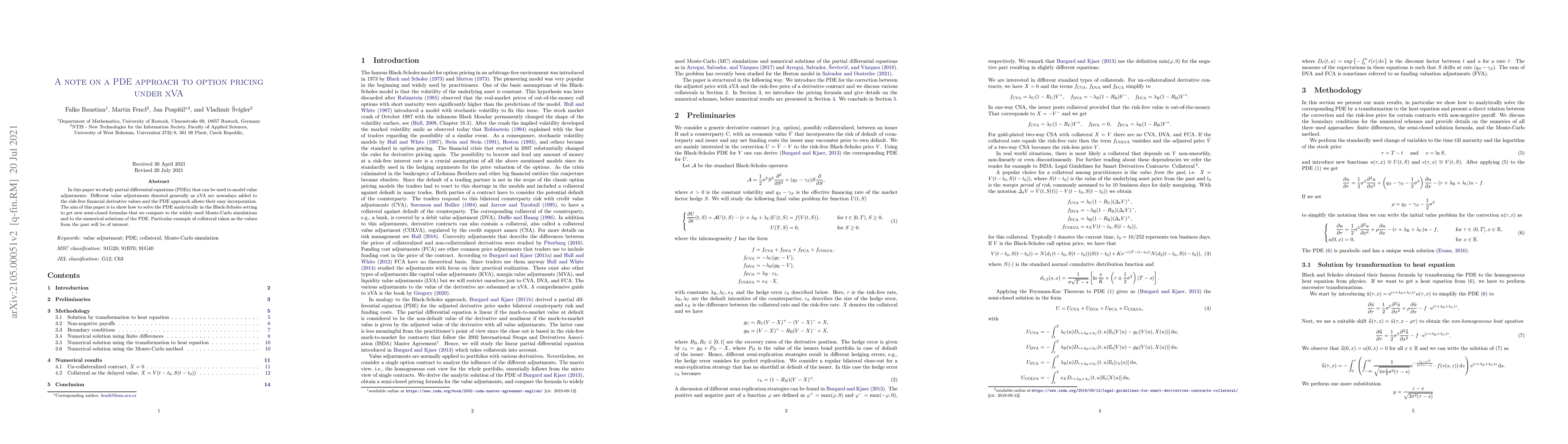 This paper explores the use of partial differential equations (PDEs) to model value adjustments (xVA) in option pricing, presenting new semi-closed formulas derived from the Black-Scholes setting and comparing them to Monte-Carlo simulations and numerical PDE solutions, with a focus on collateral values from the past.