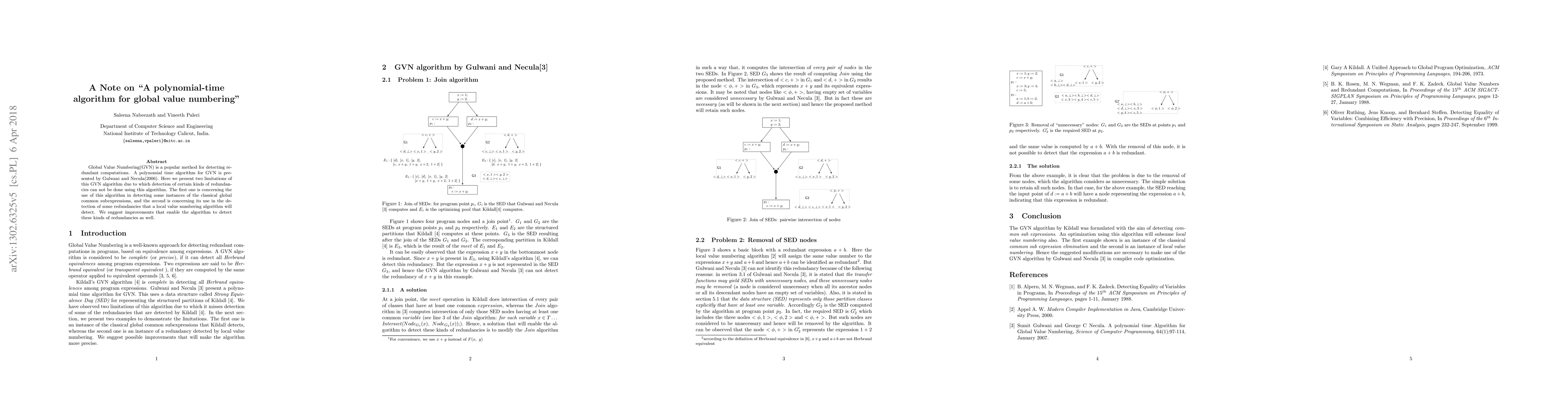 This paper identifies two limitations in Gulwani and Necula's (2006) polynomial-time algorithm for Global Value Numbering (GVN), specifically in detecting certain global common subexpressions and redundancies detected by local value numbering. It proposes improvements to enhance the algorithm's capability in these areas.