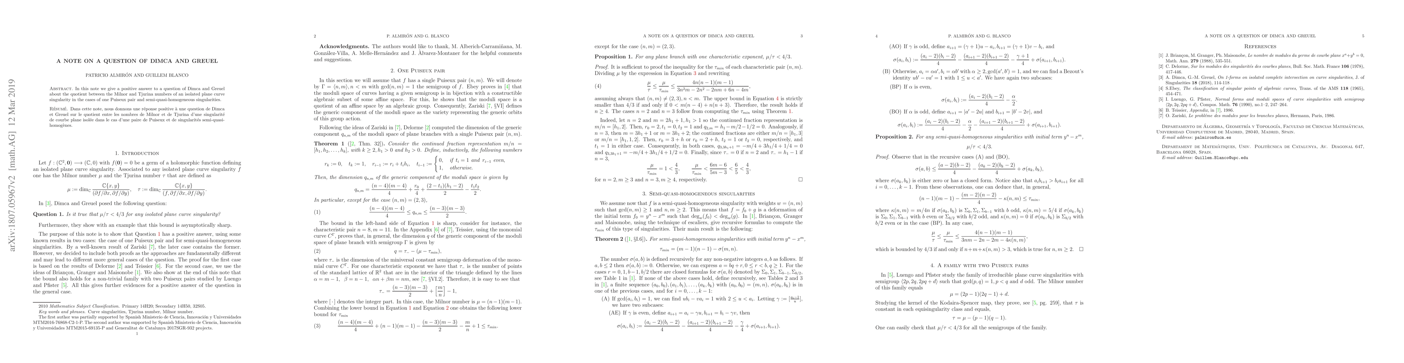 In this note we give a positive answer to a question of Dimca and Greuel about the quotient between the Milnor and Tjurina numbers of an isolated plane curve singularity in the cases of one Puiseux pair and semi-quasi-homogeneous singularities.