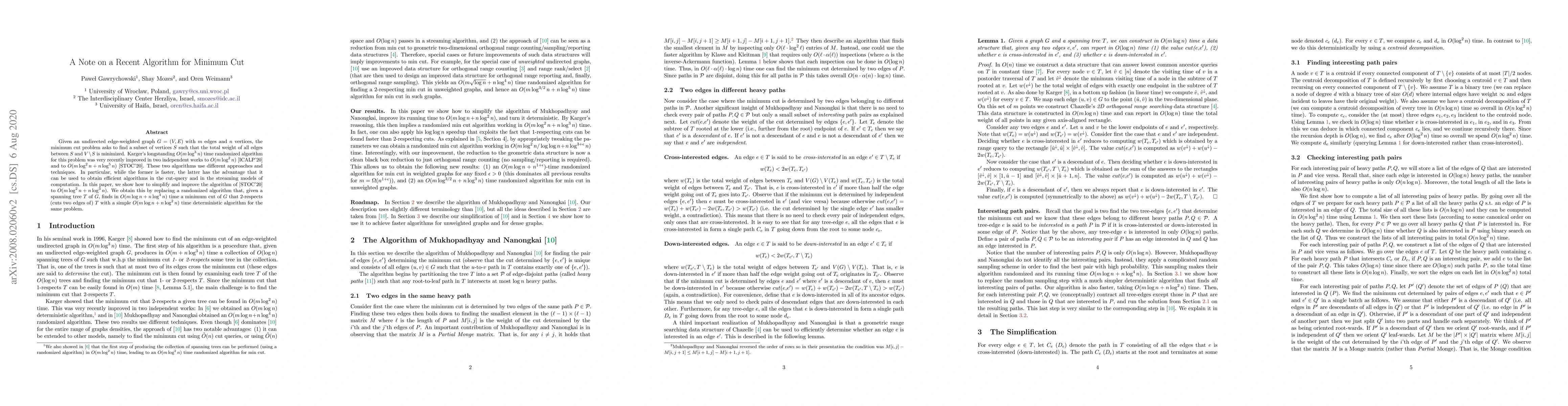 The paper presents a deterministic algorithm to replace a randomized algorithm, improving the time complexity for finding a minimum cut that respects two edges of a given spanning tree.