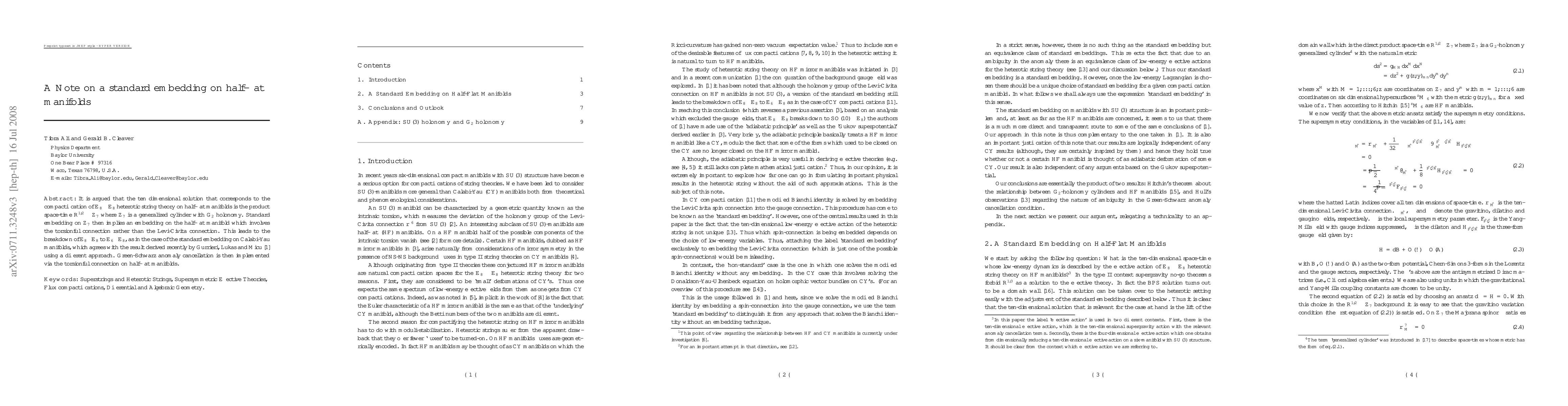 This paper argues for a ten-dimensional solution in $E_8 \times E_8$ heterotic string theory compactified on a half-flat manifold, resulting in a product space-time $R^{1,2} \times Z_7$. It employs a torsionful connection for standard embedding, leading to a breakdown of the symmetry to $E_6 \times E_8$ and implementing Green-Schwarz anomaly cancellation.