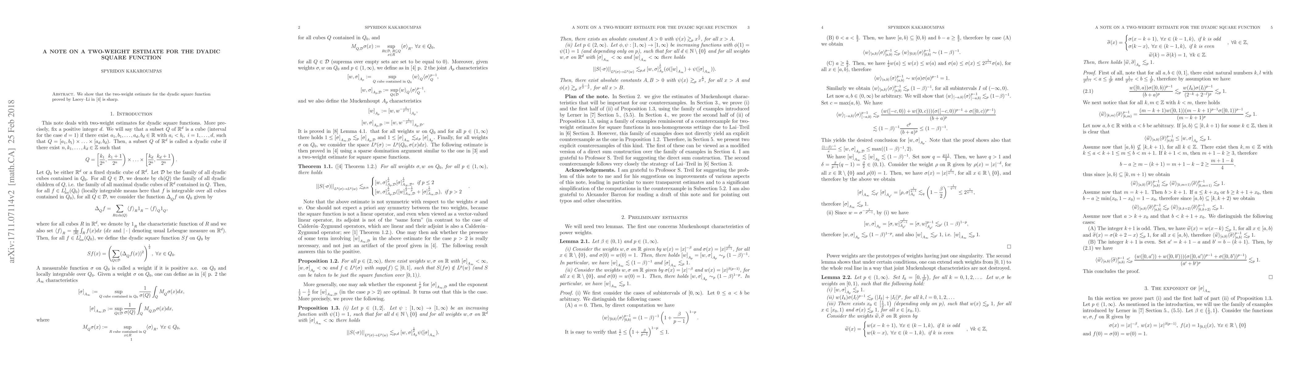 A research paper confirms that a two-weight estimate for a mathematical function is sharp, meaning it cannot be improved upon.