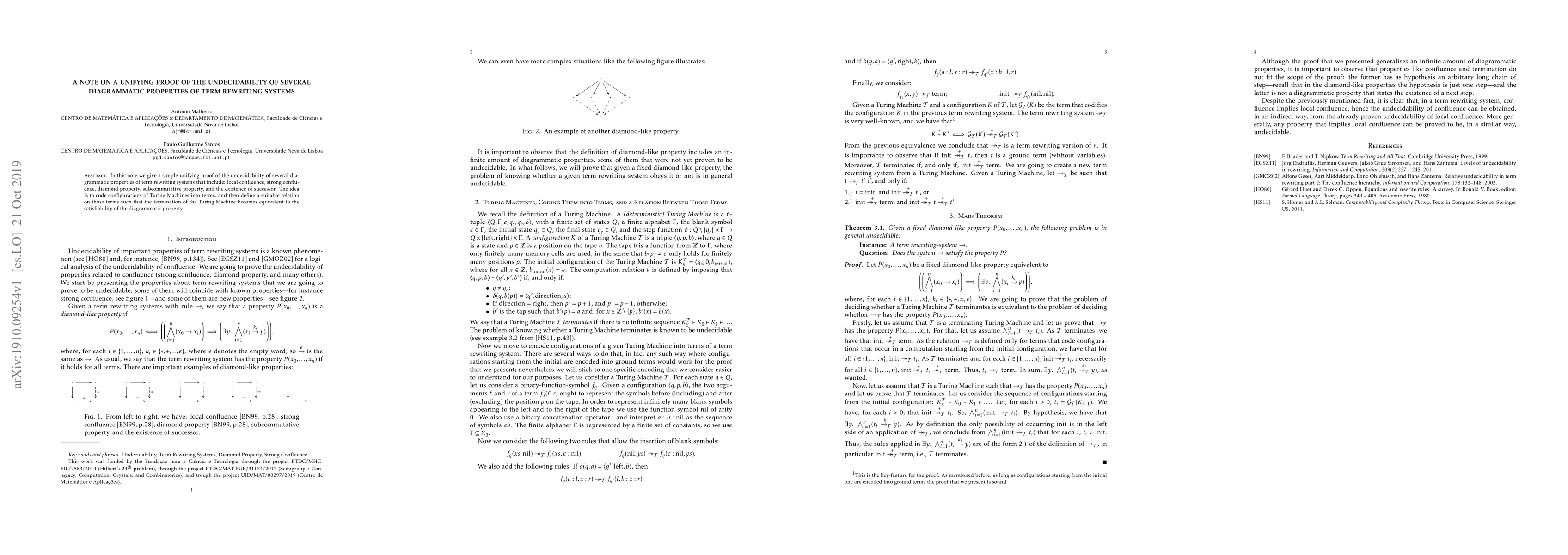 In this note we give a simple unifying proof of the undecidability of several diagrammatic properties of term rewriting systems that include: local confluence, strong confluence, diamond property, subcommutative property, and the existence of successor. The idea is to code configurations of Turing Machines into terms, and then define a suitable relation on those terms such that the termination of the Turing Machine becomes equivalent to the satisfiability of the diagrammatic property.