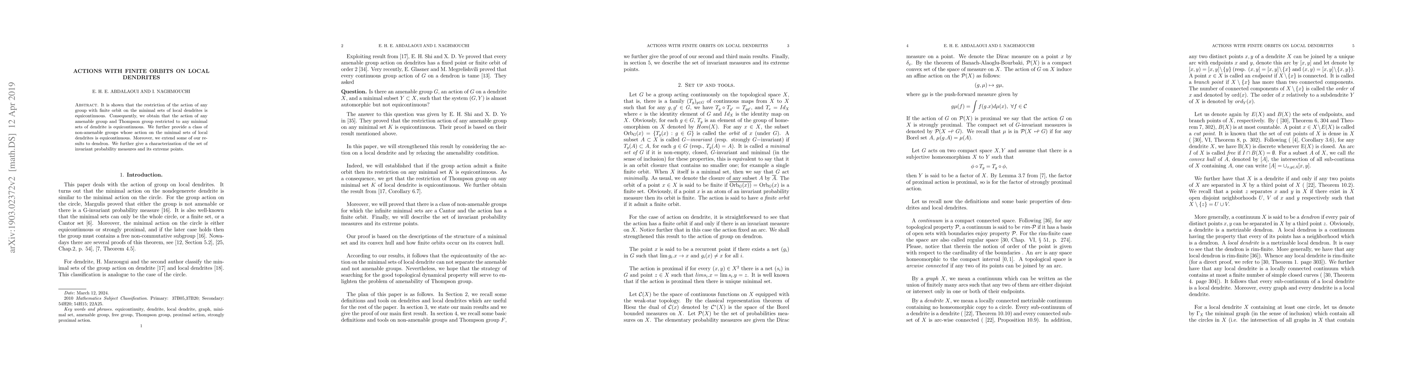 Summary: This paper demonstrates that group actions with finite orbits on dendrites, including those of amenable and Thompson groups, are equicontinuous when restricted to minimal sets. It also identifies a class of non-amenable groups with finite orbit actions on dendrites and extends these findings to dendrons, along with characterizing invariant probability measures and their extreme points.