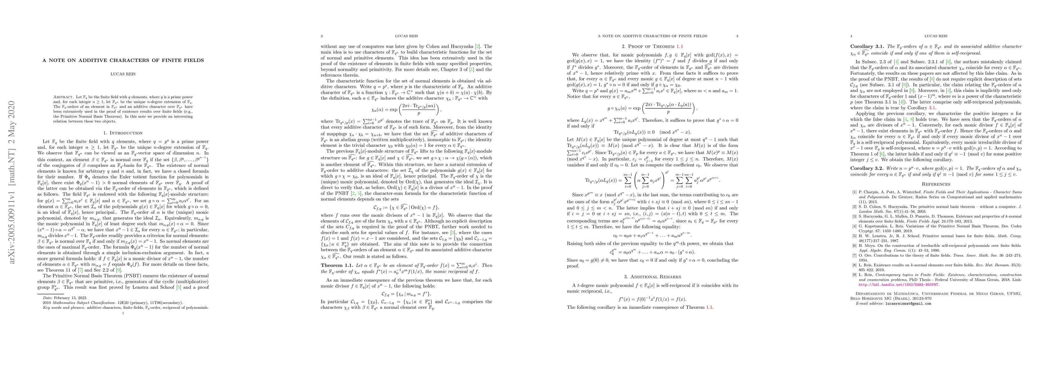 Let $\mathbb F_q$ be the finite field with $q$ elements, where $q$ is a prime power and, for each integer $n\ge 1$, let $\mathbb F_{q^n}$ be the unique $n$-degree extension of $\mathbb F_q$. The $\mathbb F_q$-orders of an element in $\mathbb F_{q^n}$ and an additive character over $\mathbb F_{q^n}$ have been extensively used in the proof of existence results over finite fields (e.g., the Primitive Normal Basis Theorem). In this note we provide an interesting relation between these two objects.