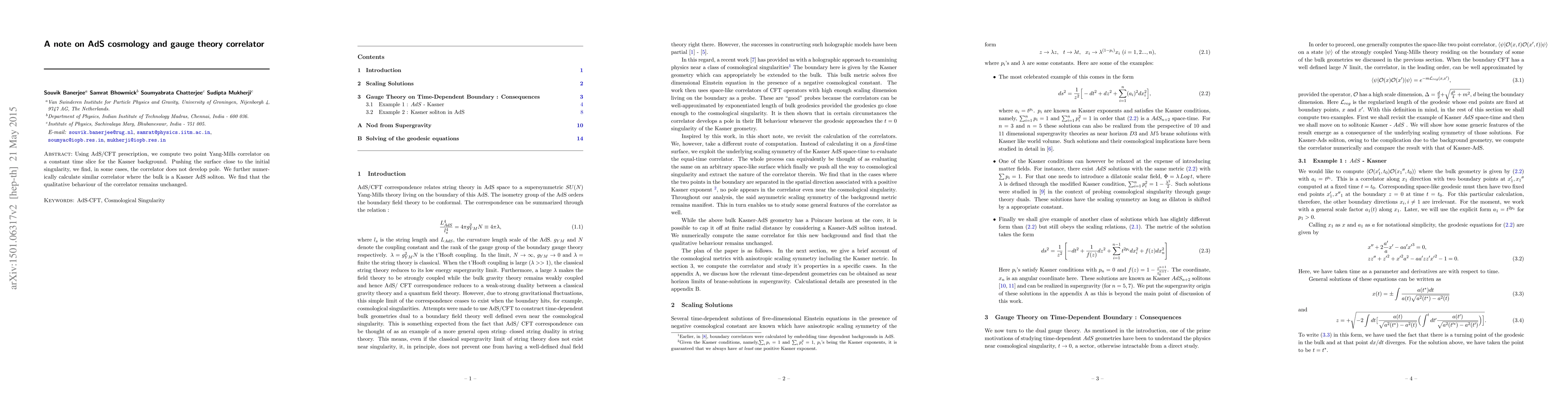 Using AdS/CFT prescription, we compute two point Yang-Mills correlator on a constant time slice for the Kasner background. Pushing the surface close to the initial singularity, we find, in some cases, the correlator does not develop pole. This is consistent with the observations made in a recent work. We further numerically calculate similar correlator where the bulk is a Kasner AdS soliton. We find that the qualitative behaviour of the correlator remains unchanged.