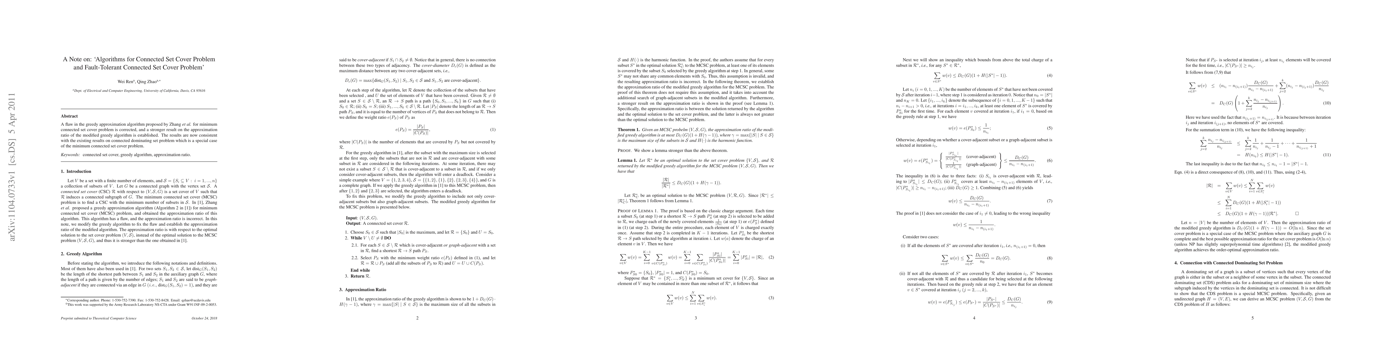 Researchers corrected a flaw in a minimum connected set cover algorithm and established a stronger approximation ratio result, making it consistent with existing results on a related problem.