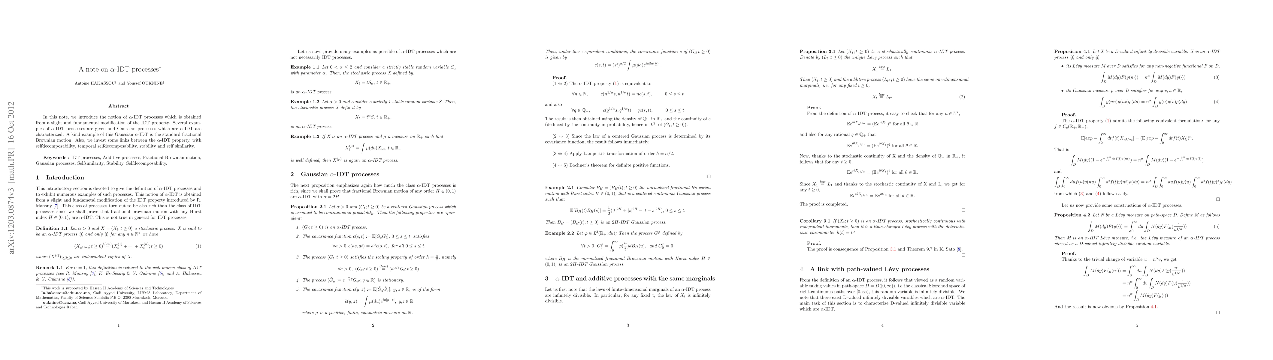 The research introduces the concept of $\alpha$-IDT processes, derived from a modification of the IDT property, and provides examples including Gaussian processes like the standard fractional Brownian motion.