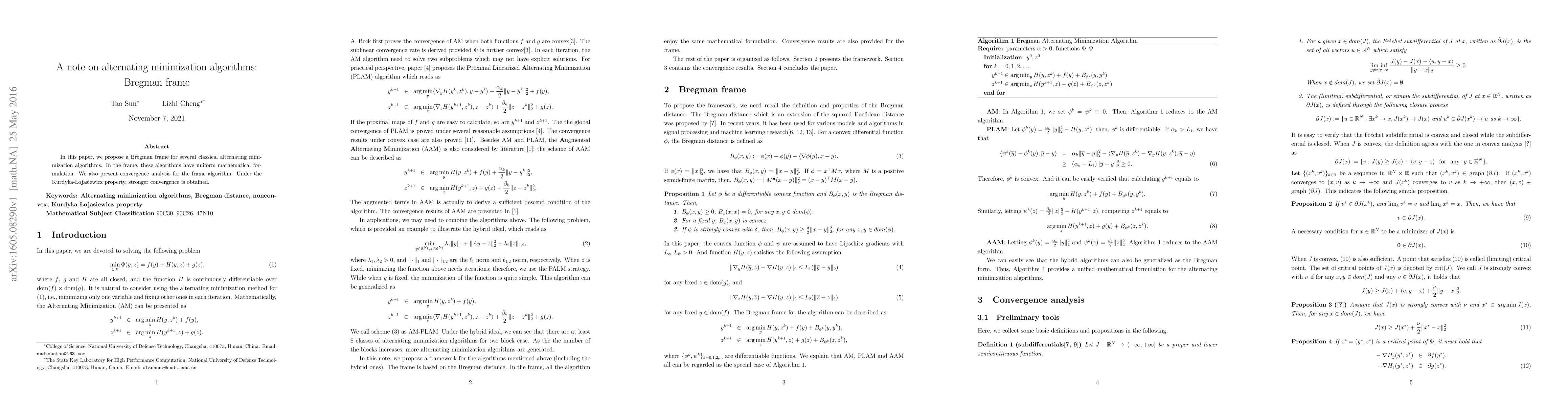 This paper introduces a Bregman frame to unify several classical alternating minimization algorithms under a single mathematical formulation and provides a convergence analysis, showing stronger convergence under the Kurdyka-Lojasiewicz property.