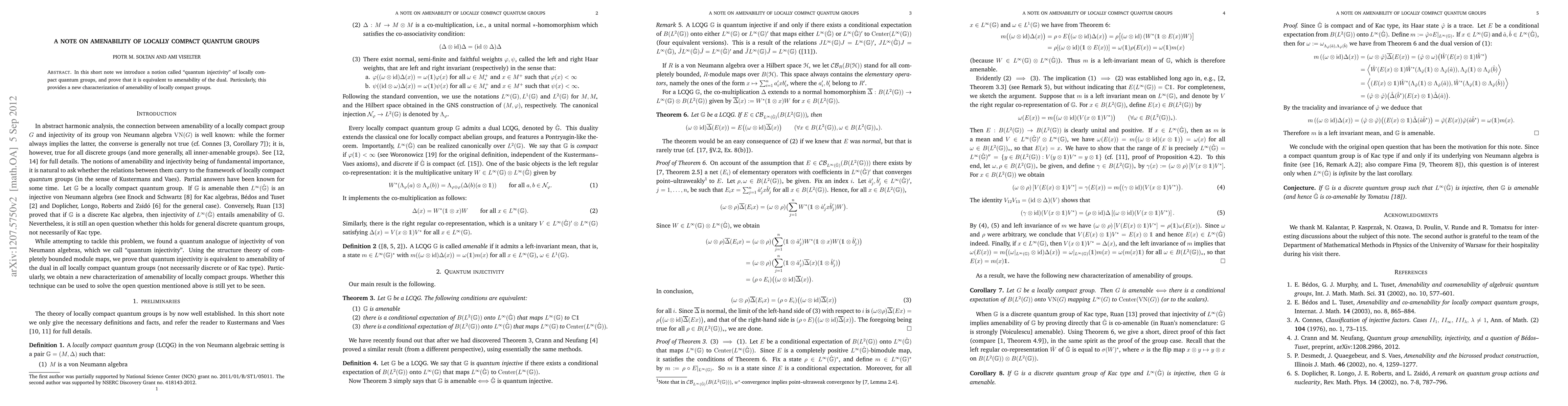 This paper introduces the concept of "quantum injectivity" for locally compact quantum groups and demonstrates its equivalence to the amenability of the dual, offering a novel characterization of amenability for locally compact groups.