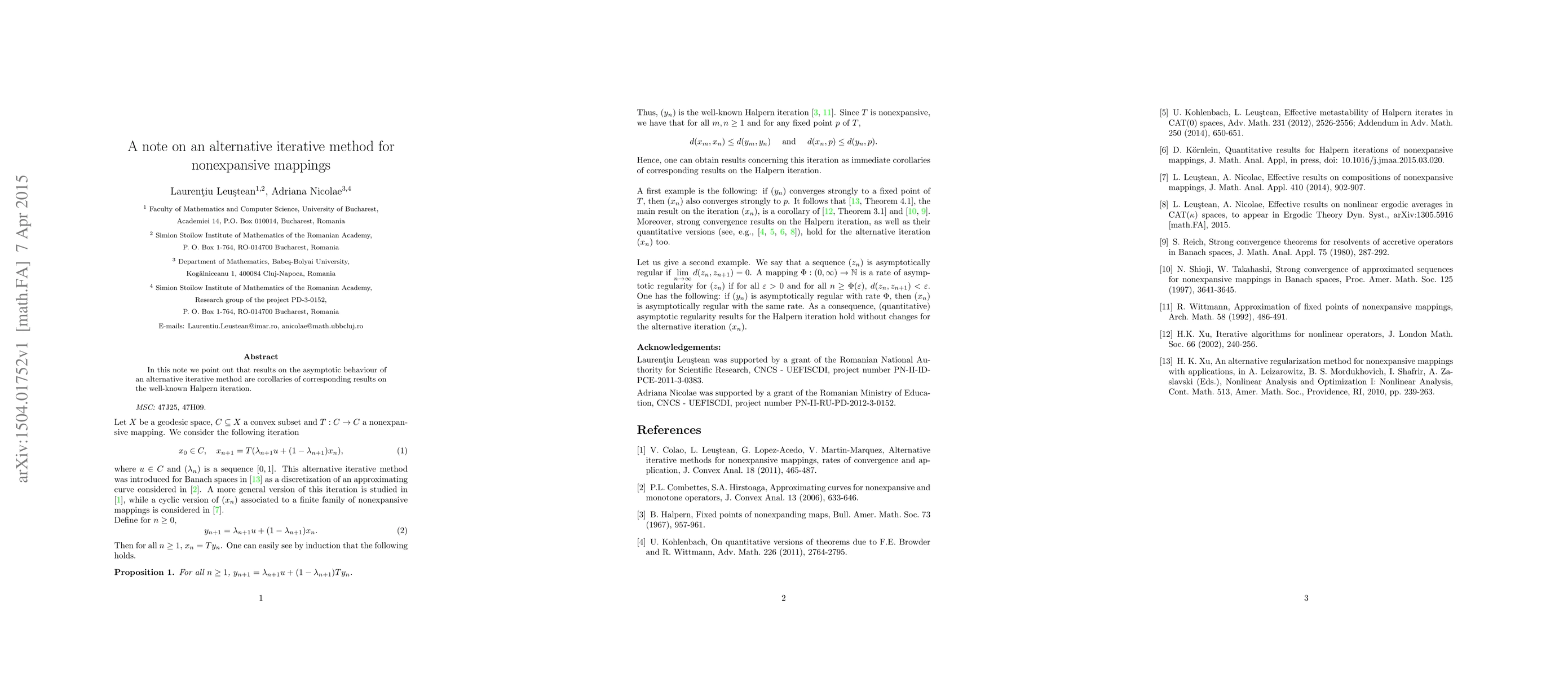 Summary: This paper demonstrates that the asymptotic behavior of an alternative iterative method for nonexpansive mappings can be derived from established results on the Halpern iteration, highlighting its theoretical equivalence.