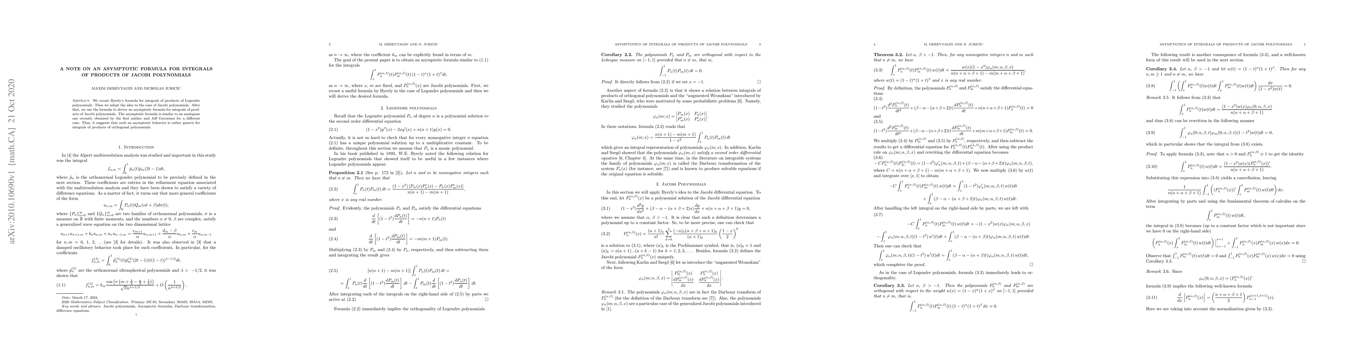 Researchers derive an asymptotic formula for integrals of products of Jacobi polynomials, suggesting this behavior is generic for orthogonal polynomials.