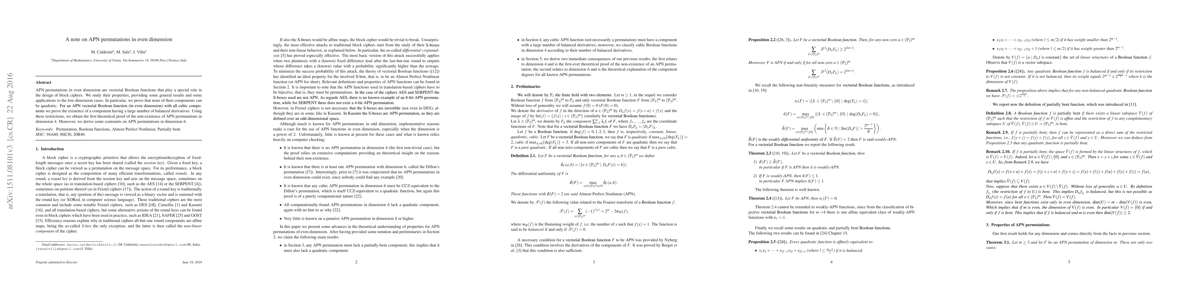 Researchers study properties of APN permutations in even dimensions, proving that certain components cannot be quadratic and leading to the non-existence of APN permutations in dimension 4.