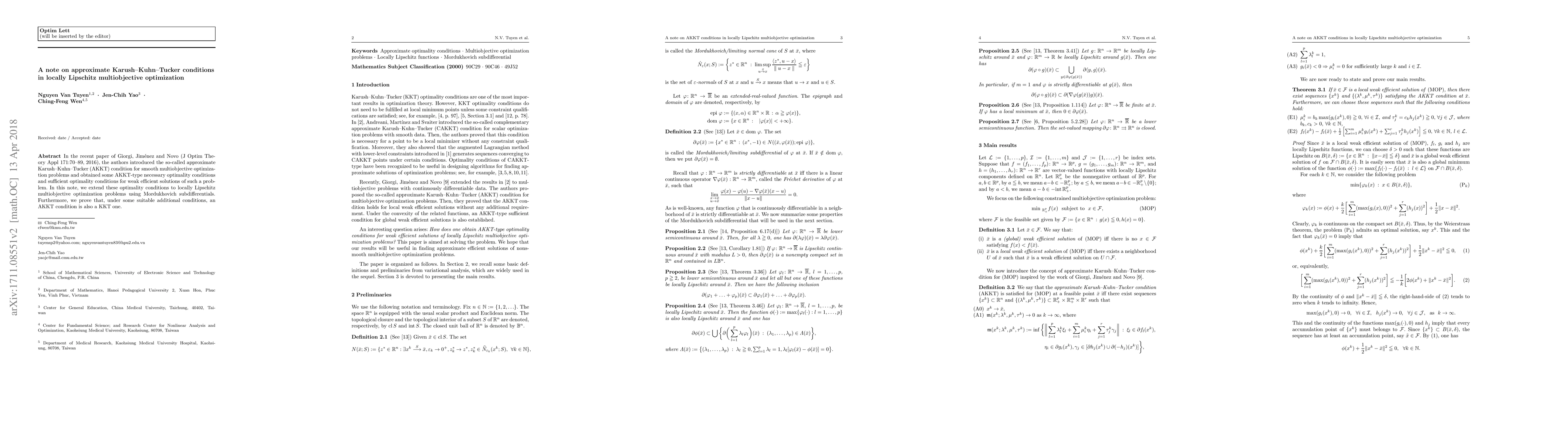 In the recent paper of Giorgi, Jim\'enez and Novo (J Optim Theory Appl 171:70--89, 2016), the authors introduced the so-called approximate Karush-Kuhn-Tucker (AKKT) condition for smooth multiobjective optimization problems and obtained some AKKT-type necessary optimality conditions and sufficient optimality conditions for weak efficient solutions of such a problem. In this note, we extend these optimality conditions to locally Lipschitz multiobjective optimization problems using Mordukhovich subdifferentials. Furthermore, we prove that, under some suitable additional conditions, an AKKT condition is also a KKT one.