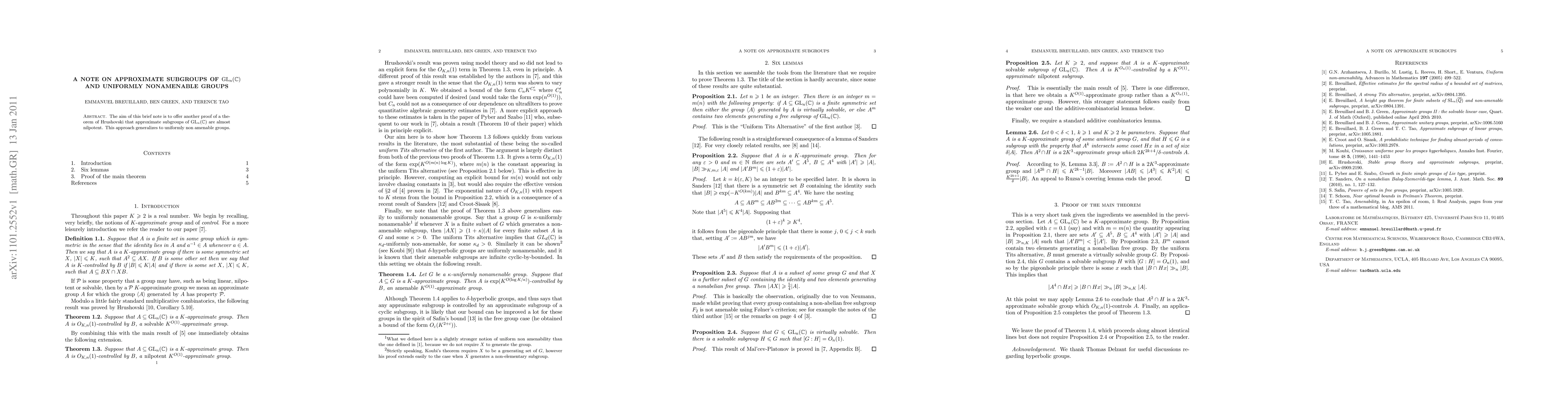 Summary: This paper provides an alternative proof of Hrushovski's theorem that approximate subgroups of GL_n(C) are almost nilpotent, extending the result to uniformly non amenable groups. The new approach offers a generalized perspective on the structure of these groups.