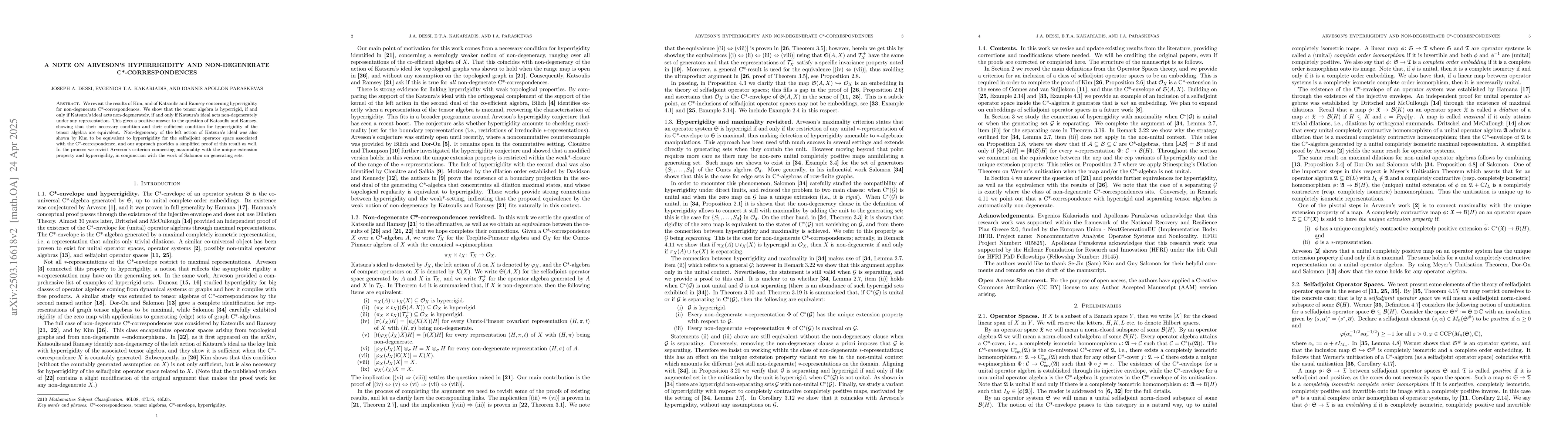 The paper establishes equivalences between various conditions for hyperrigidity, particularly for the tensor algebra of non-degenerate C*-correspondences, and provides a streamlined proof for a known result.