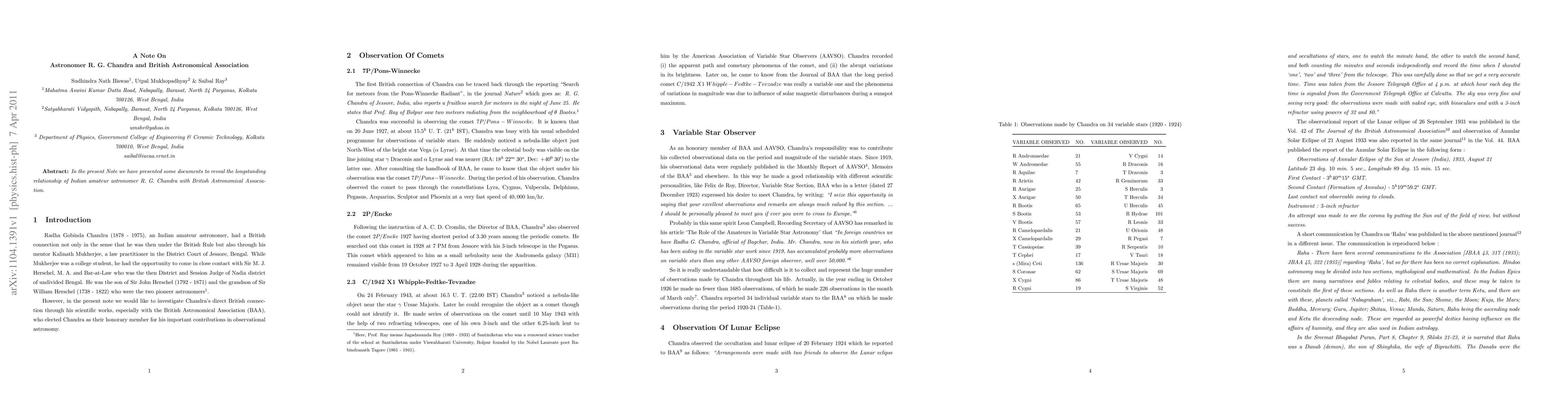Summary: This note highlights the longstanding relationship between Indian amateur astronomer R. G. Chandra and the British Astronomical Association, presenting documents that illustrate their collaborative contributions.