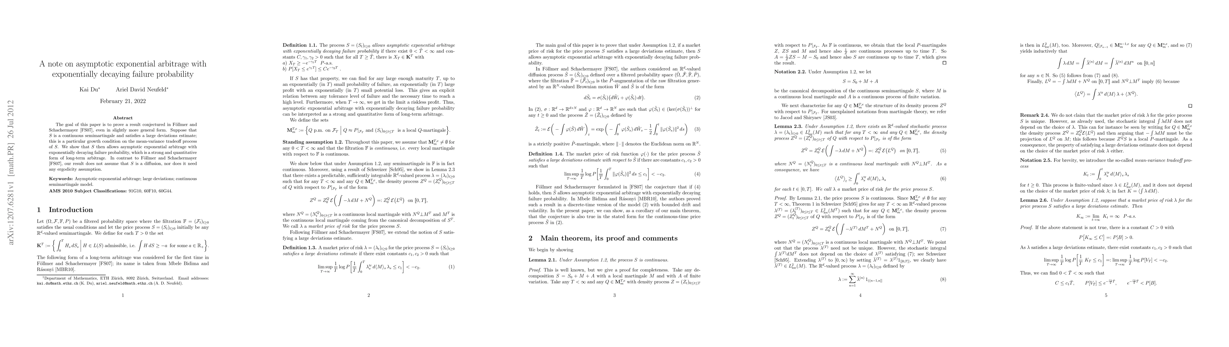 This paper proves a conjectured result by Föllmer and Schachermayer, showing that a continuous semimartingale satisfying a large deviations estimate allows for asymptotic exponential arbitrage with exponentially decaying failure probability, without assuming it is a diffusion or requiring ergodicity. This provides a strong, quantitative form of long-term arbitrage.