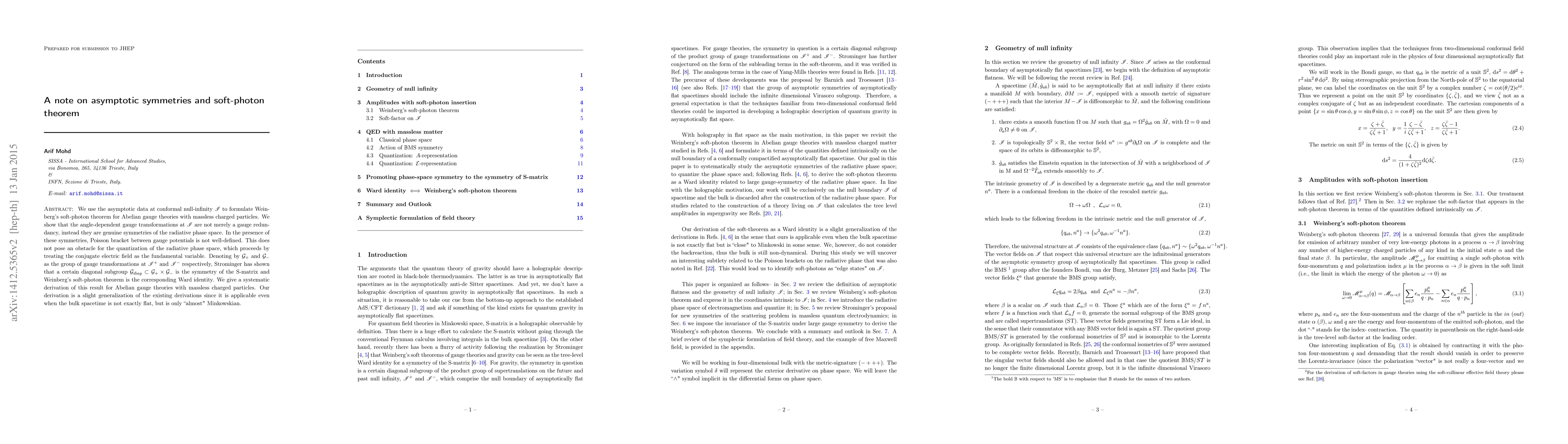 We use the asymptotic data at conformal null-infinity $\mathscr{I}$ to formulate Weinberg's soft-photon theorem for Abelian gauge theories with massless charged particles. We show that the angle-dependent gauge transformations at $\mathscr{I}$ are not merely a gauge redundancy, instead they are genuine symmetries of the radiative phase space. In the presence of these symmetries, Poisson bracket between the gauge potentials is not well-defined. This does not pose an obstacle for the quantization of the radiative phase space, which proceeds by treating the conjugate electric field as the fundamental variable. Denoting by $\mathcal{G}_+$ and $\mathcal{G}_-$ as the group of gauge transformations at $\mathscr{I}^+$ and $\mathscr{I}^-$ respectively, Strominger has shown that a certain diagonal subgroup $ \mathcal{G}_{diag} \subset \mathcal{G}_+ \times \mathcal{G}_-$ is the symmetry of the S-matrix and Weinberg's soft-photon theorem is the corresponding Ward identity. We give a systematic derivation of this result for Abelian gauge theories with massless charged particles. Our derivation is a slight generalization of the existing derivations since it is applicable even when the bulk spacetime is not exactly flat, but is only "almost" Minkowskian.