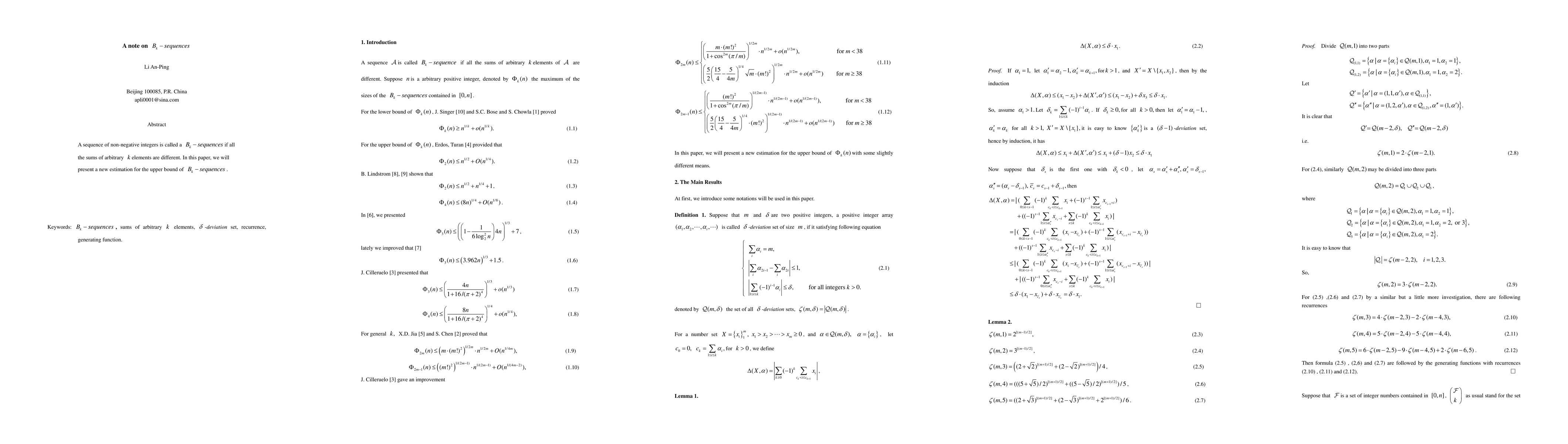 A sequence of non-negative integers is called a B_k sequence if all the sums of arbitrary k elements are different. In this paper, we will present a new estimation for the upper bound of B_k sequences.