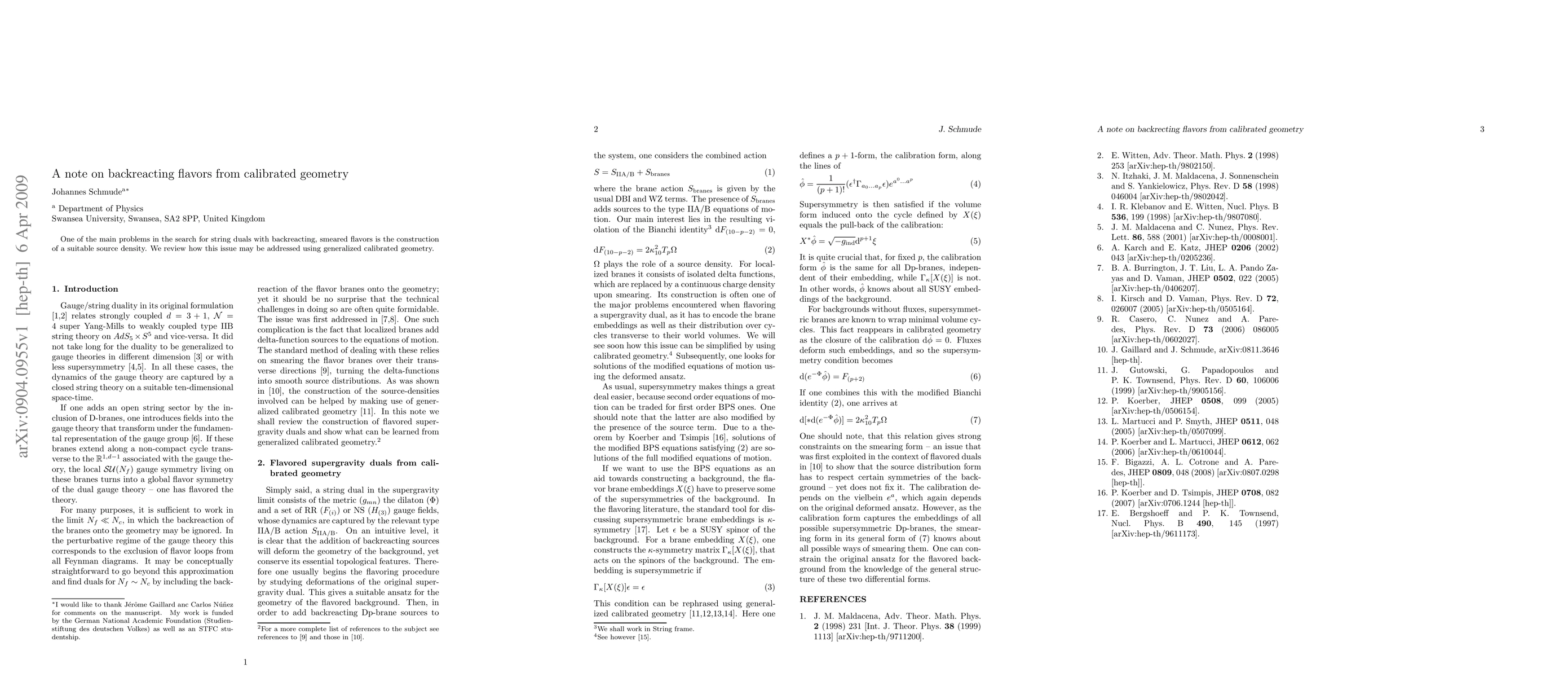 One of the main problems in the search for string duals with backreacting, smeared flavors is the construction of a suitable source density. We review how this issue may be addressed using generalized calibrated geometry.