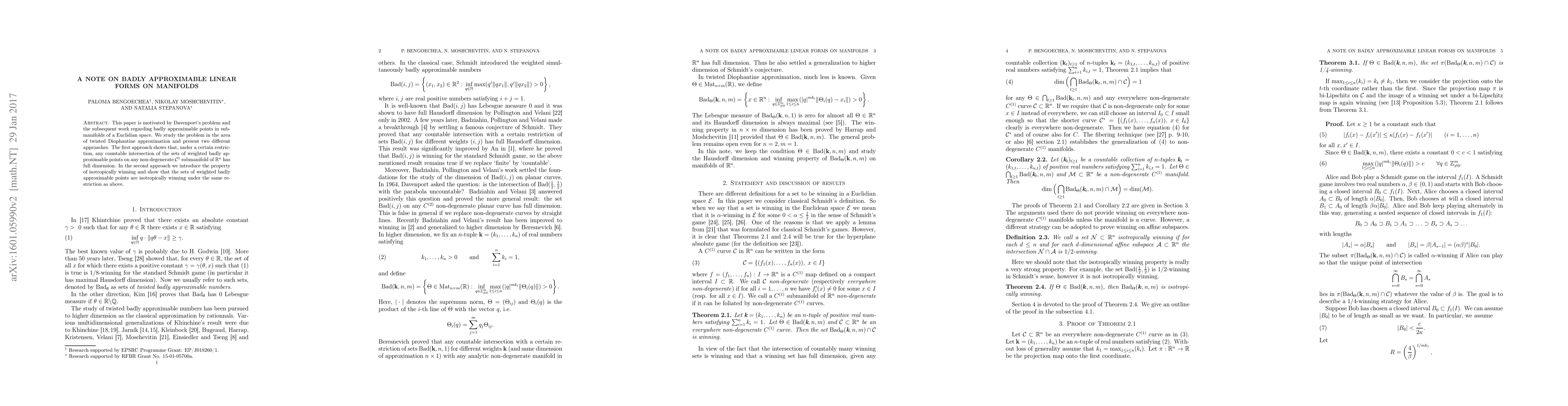 This paper is motivated by Davenport's problem and the subsequent work regarding badly approximable points in submanifolds of a Euclidian space. We study the problem in the area of twisted Diophantine approximation and present two different approaches. The first approach shows that, under a certain restriction, any countable intersection of the sets of weighted badly approximable points on any non-degenerate C^1 submanifold of R^n has full dimension. In the second approach we introduce the property of isotropically winning and show that the sets of weighted badly approximable points are isotropically winning under the same restriction as above.