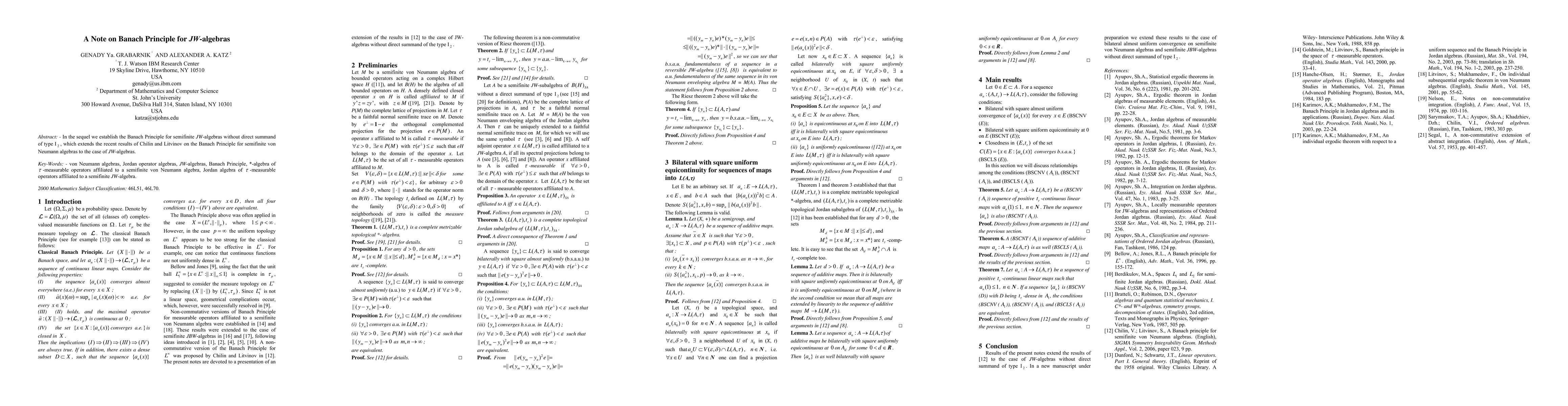 This paper establishes the Banach Principle for semifinite JW-algebras that do not have a type I sub 2 direct summand, extending previous results for semifinite von Neumann algebras to the JW-algebra setting.