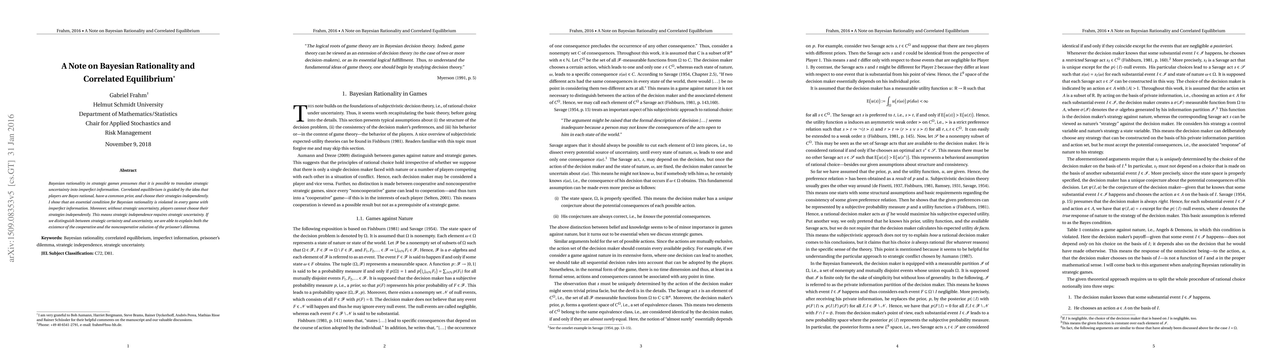 This paper argues that Bayesian rationality in strategic games is fundamentally flawed in games with imperfect information, as it violates a key condition. It concludes that strategic independence necessitates strategic uncertainty, which helps explain both cooperative and noncooperative outcomes in the prisoner's dilemma.