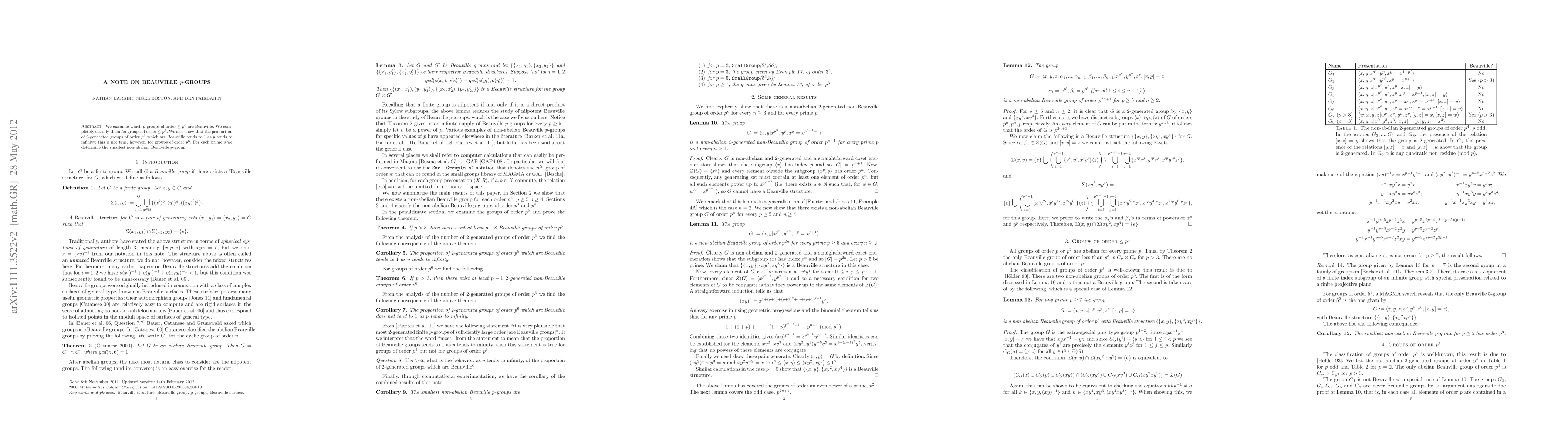 This paper classifies $p$-groups of order up to $p^4$ that are Beauville and demonstrates that nearly all 2-generated groups of order $p^5$ become Beauville as $p$ grows large. It also identifies the smallest non-abelian Beauville $p$-group for any prime $p$.