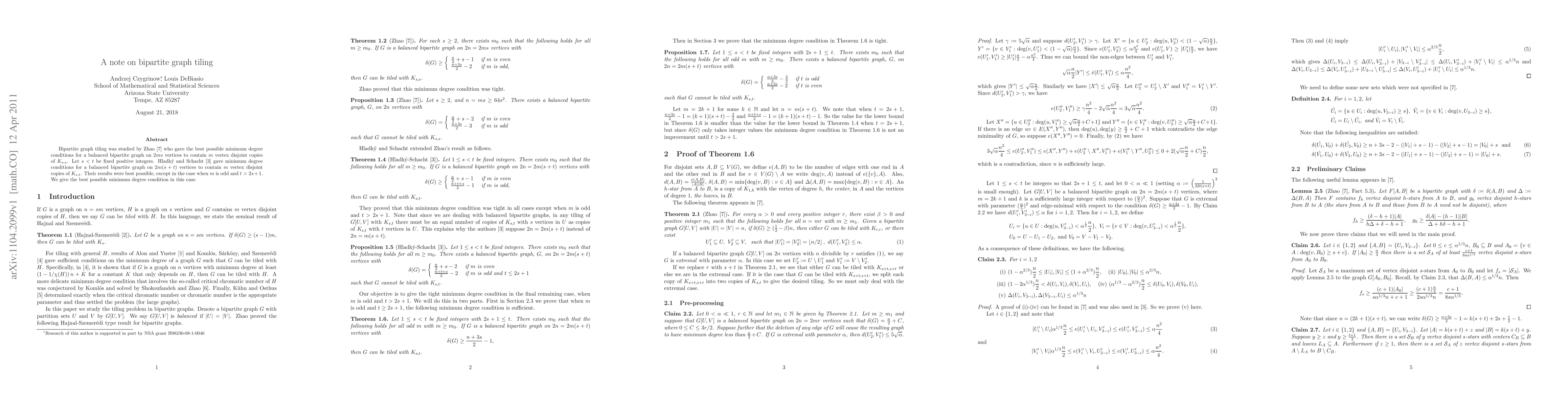 Bipartite graph tiling was studied by Zhao who gave the best possible minimum