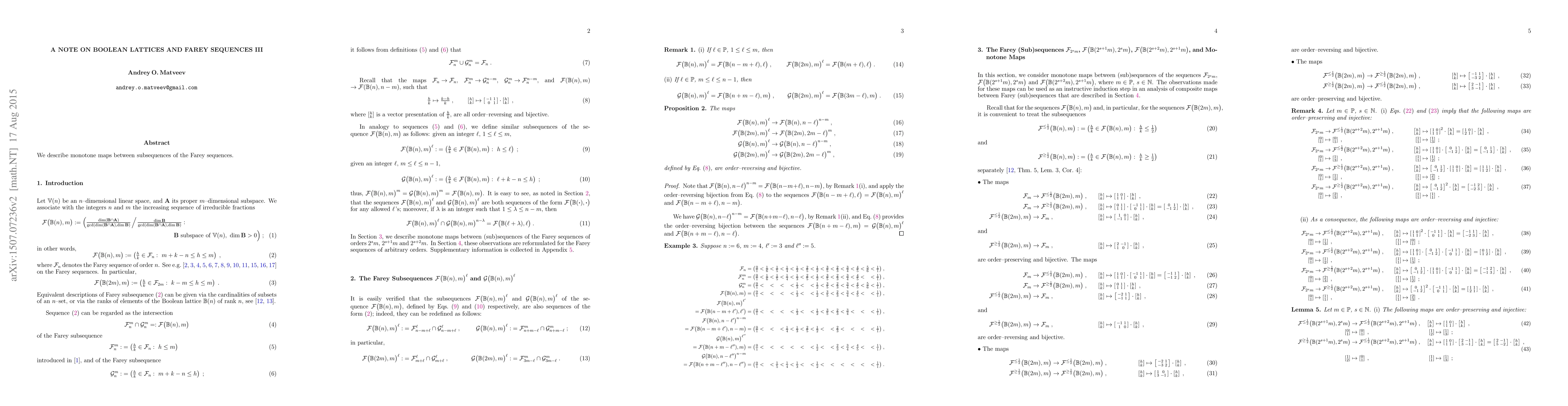 Summary: This paper explores the monotonic mappings between specific subsequences of the Farey sequences, providing insights into the structure and behavior of Boolean lattices.