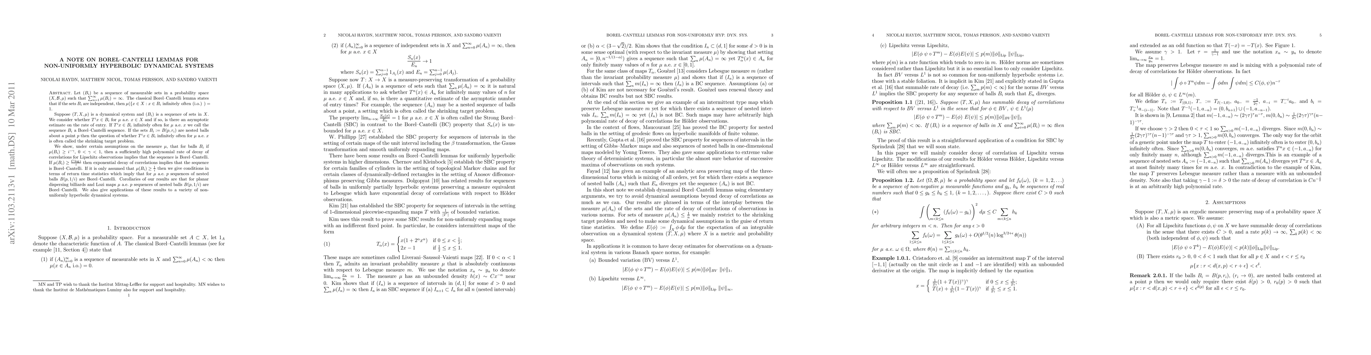 This paper explores the Borel-Cantelli lemmas in the context of non-uniformly hyperbolic dynamical systems, focusing on sequences of nested balls and their asymptotic behavior under certain decay conditions of correlations. It establishes conditions under which such sequences exhibit Borel-Cantelli properties, with applications to planar dispersing billiards and Lozi maps.