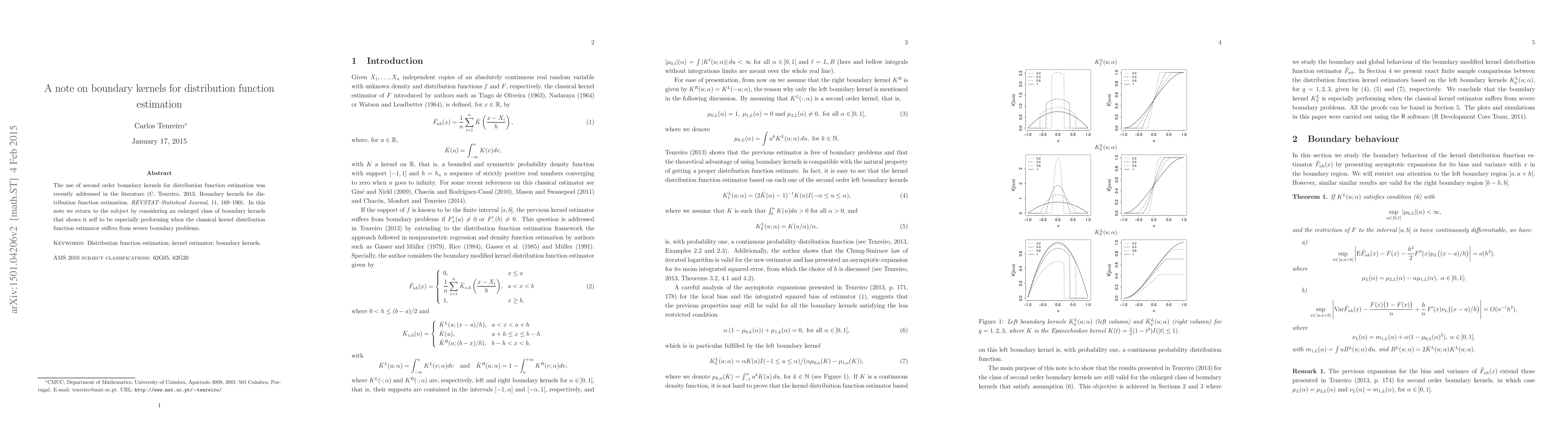 This paper explores boundary kernels for distribution function estimation, finding a class of kernels that performs well when traditional estimators struggle with boundaries.