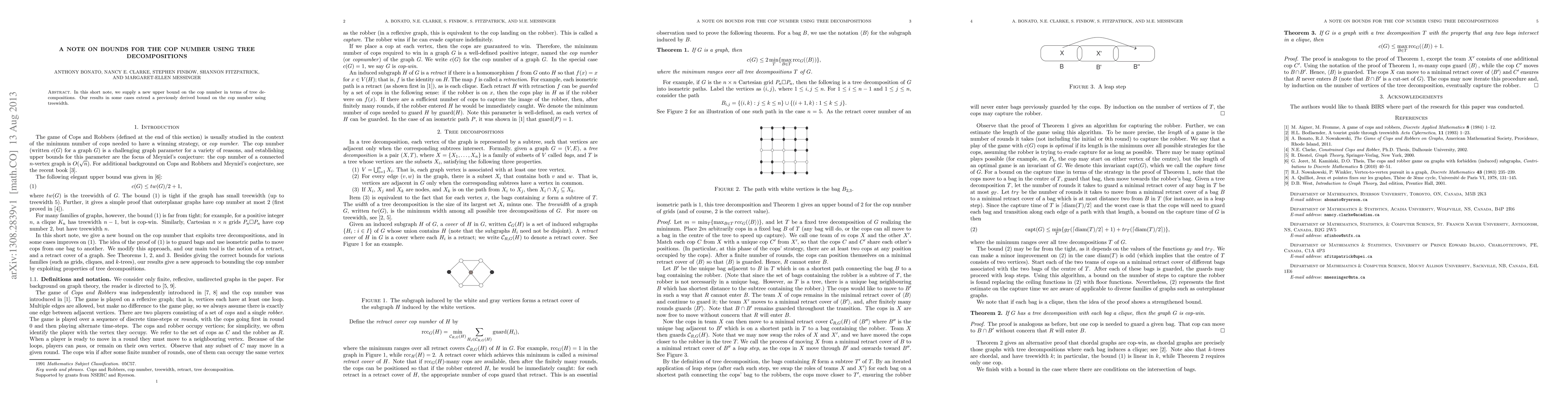 This paper provides a new upper bound on the cop number using tree decompositions, extending previous results in some cases. It offers improved insights into the structure of graphs with certain properties.