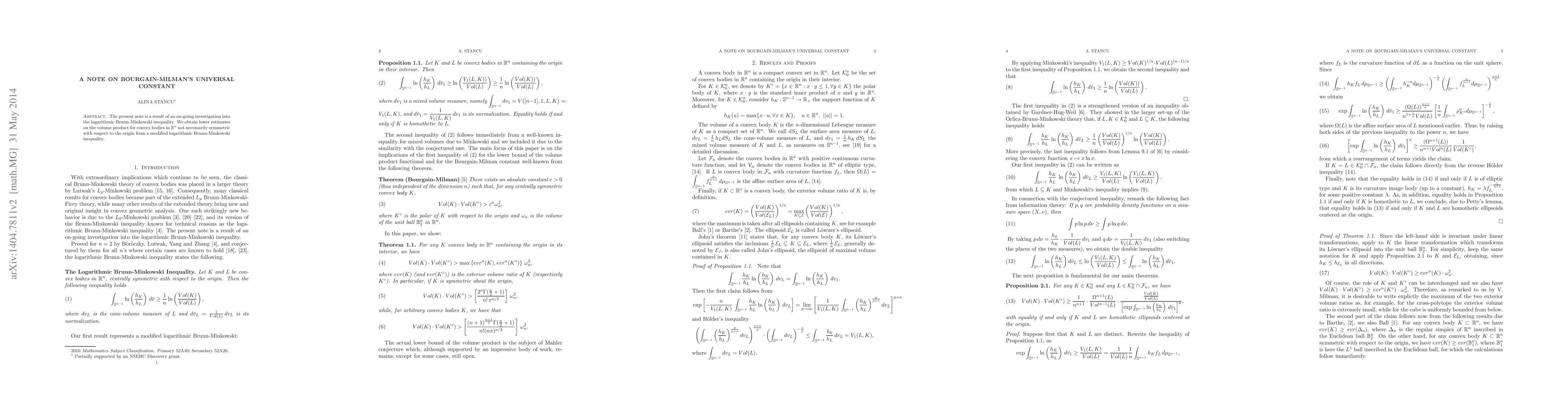 The present note is a result of an on-going investigation into the logarithmic Brunn-Minkowski inequality. We obtain lower estimates on the volume product for convex bodies in $\mathbb{R}^n$ not necessarily symmetric with respect to the origin from a modified logarithmic Brunn-Minkowski inequality.