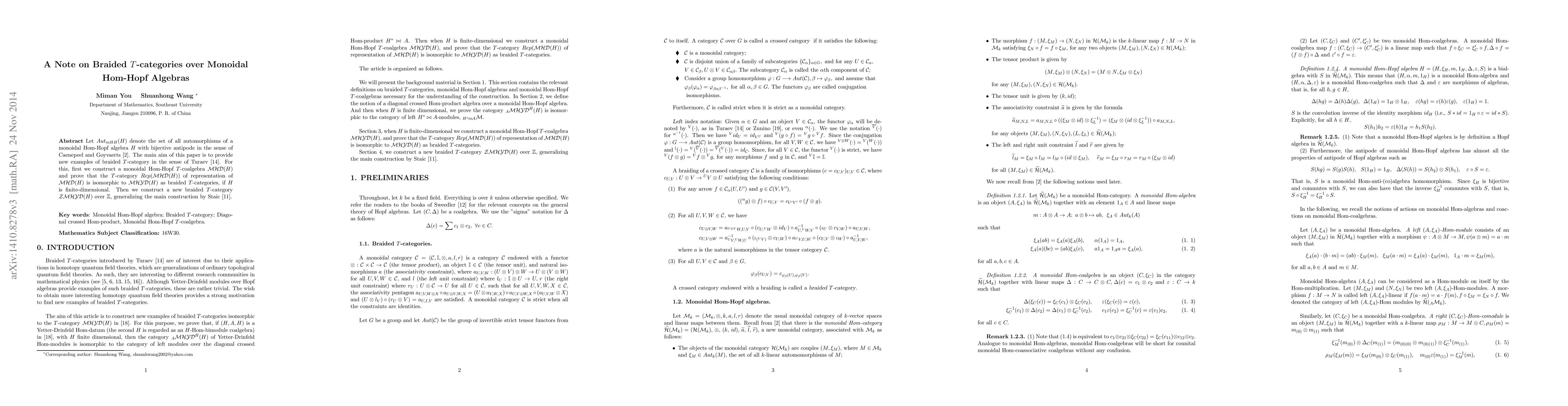 Let $ Aut_{mHH}(H)$ denote the set of all automorphisms of a monoidal Hopf algebra $H$ with bijective antipode in the sense of Caenepeel and Goyvaerts \cite{CG2011}. The main aim of this paper is to provide new examples of braided $T$-category in the sense of Turaev \cite{T2008}. For this, first we construct a monoidal Hom-Hopf $T$-coalgebra $\mathcal{MHD}(H)$ and prove that the $T$-category $Rep(\mathcal{MHD}(H))$ of representation of $\mathcal{MHD}(H)$ is isomorphic to $\mathcal {MHYD}(H)$ as braided $T$-categories, if $H$ is finite-dimensional. Then we construct a new braided $T$-category $\mathcal{ZMHYD}(H)$ over $\mathbb{Z},$ generalizing the main construction by Staic \cite{S2007}.