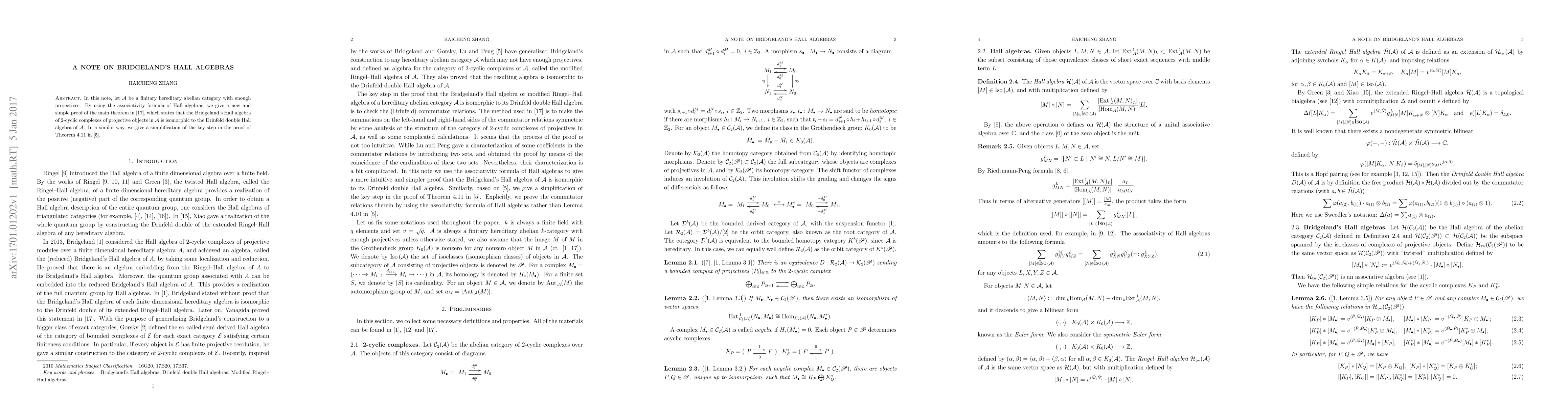 This paper provides a simplified proof of the isomorphism between Bridgeland's Hall algebra of 2-cyclic complexes of projective objects in a hereditary abelian category and the Drinfeld double Hall algebra of the category, using the associativity formula of Hall algebras. It also simplifies a crucial step in the proof of a related theorem.