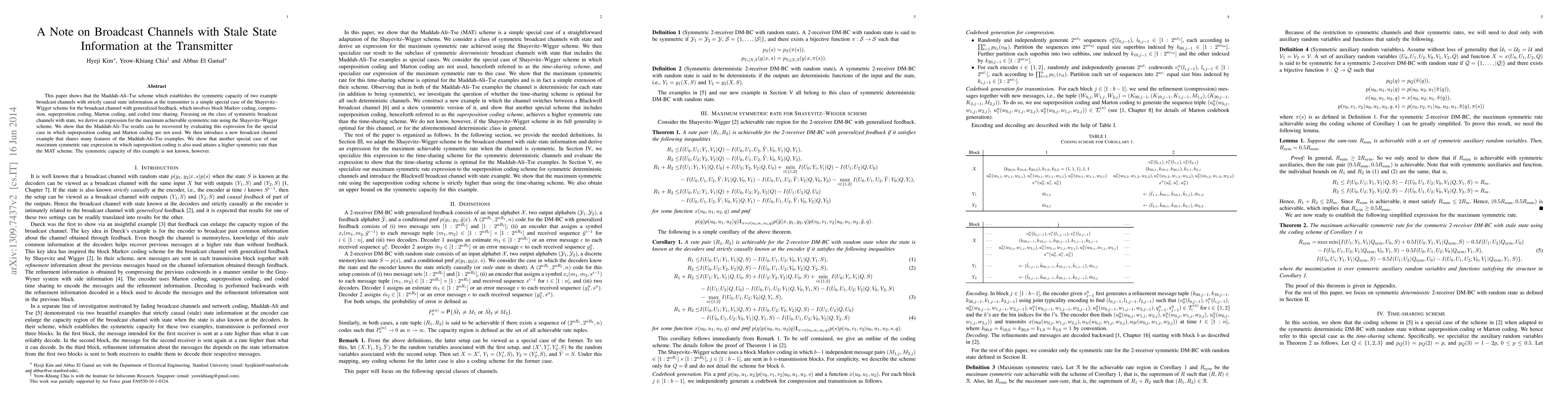 This paper extends the Shayevitz--Wigger scheme to derive a maximum achievable symmetric rate for broadcast channels with stale state information, showing that the MAT scheme is a special case. It introduces a new example where a modified scheme attains a higher symmetric rate than the MAT scheme.