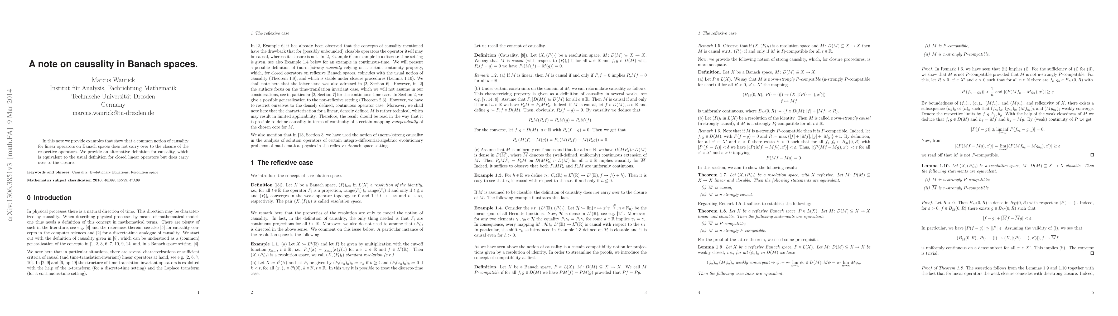 This paper demonstrates that a standard causality notion for linear operators in Banach spaces fails when applied to the closures of these operators. It proposes an alternative causality definition that aligns with the usual definition for closed operators but extends to their closures.