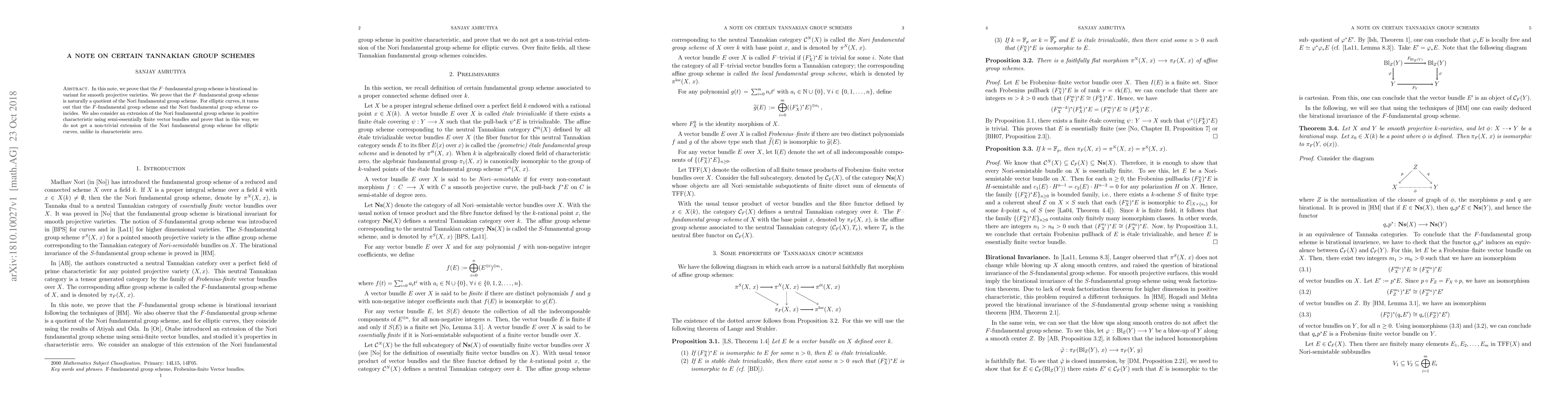 In this note, we prove that the F-fundamental group scheme is birational invariant for smooth projective varieties. We prove that the F-fundamental group scheme is naturally a quotient of the Nori fundamental group scheme. For elliptic curves, it turns out that the F-fundamental group scheme and the Nori fundamental group scheme coincides. We also consider an extension of the Nori fundamental group scheme in positive characteristic using semi-essentially finite vector bundles and prove that in this way, we do not get a non-trivial extension of the Nori fundamental group scheme for elliptic curves, unlike in characteristic zero.